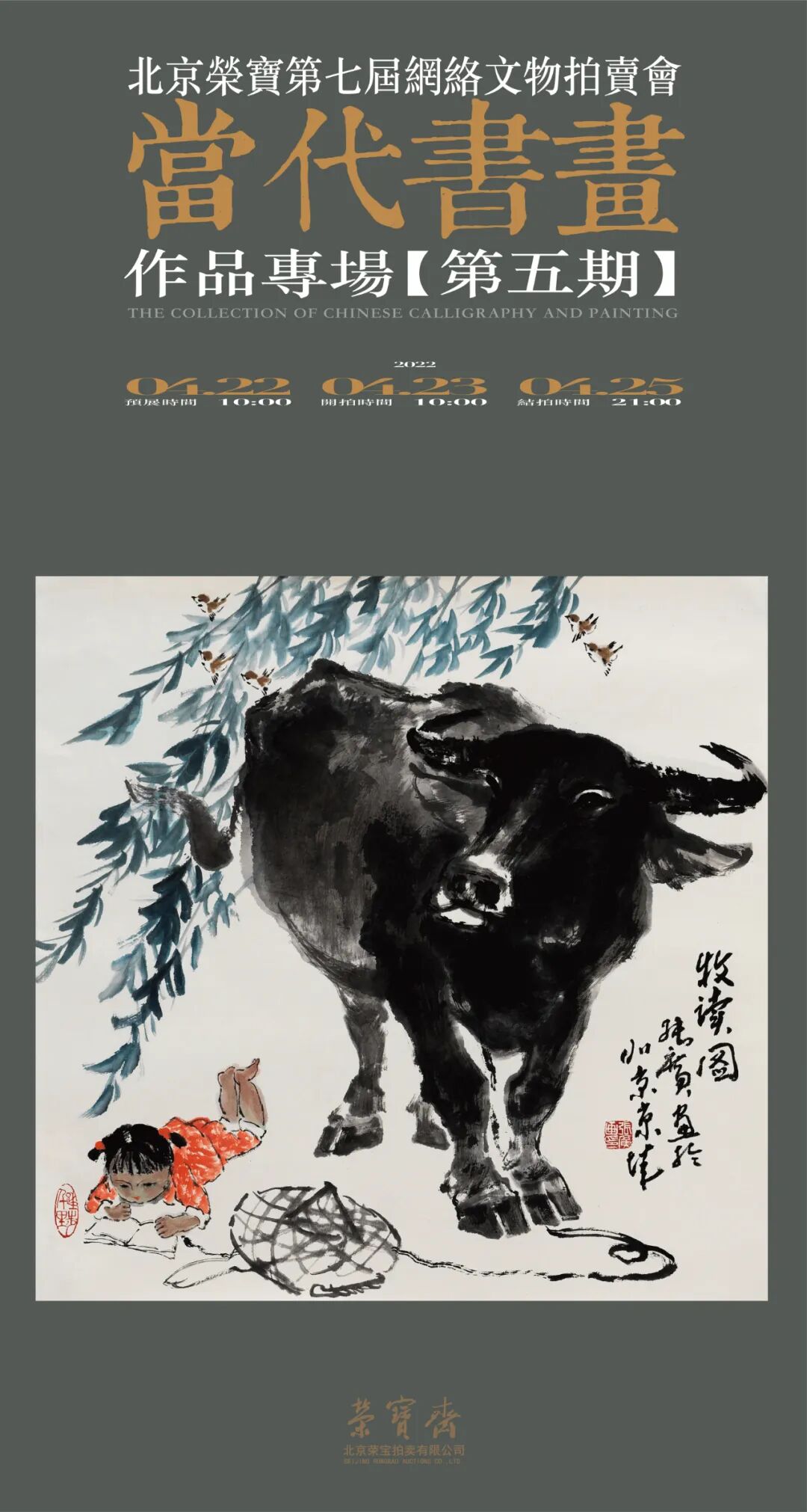 北京荣宝第七届网络文物拍卖会——当代书画作品专场(五)将于4月22日10:00—4月23日10:00开启线上预展,并于4月23日10:00开拍,4月25日21:00结拍。