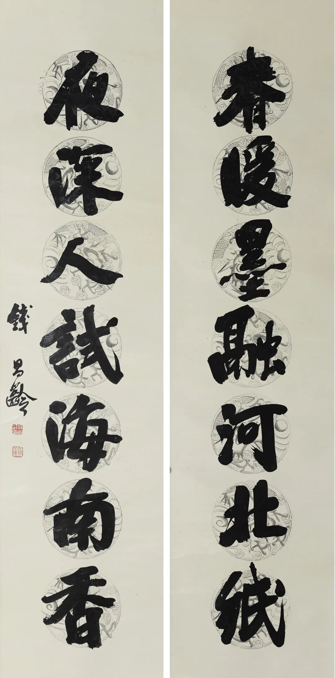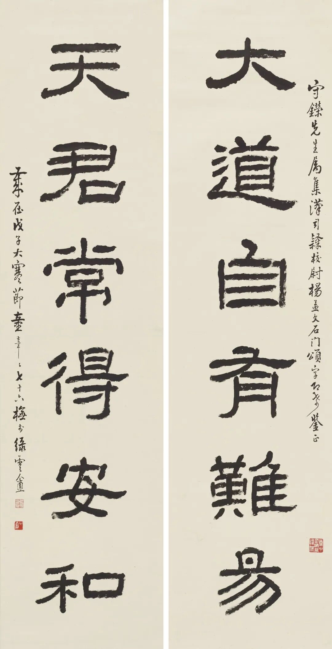 钱昌龄《春暖夜深联》 128cm×31cm×2