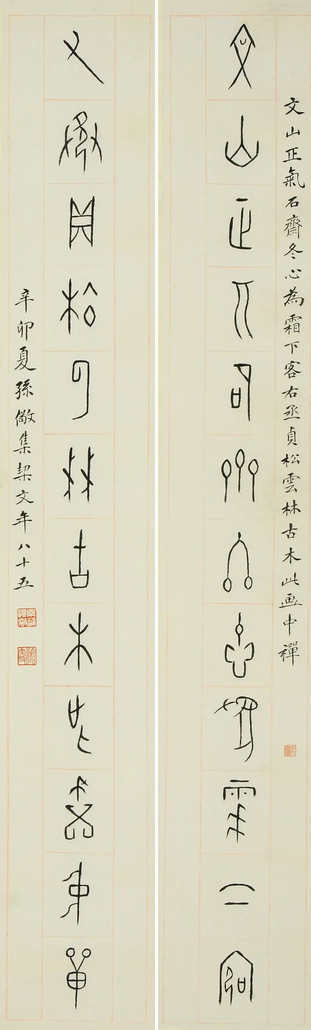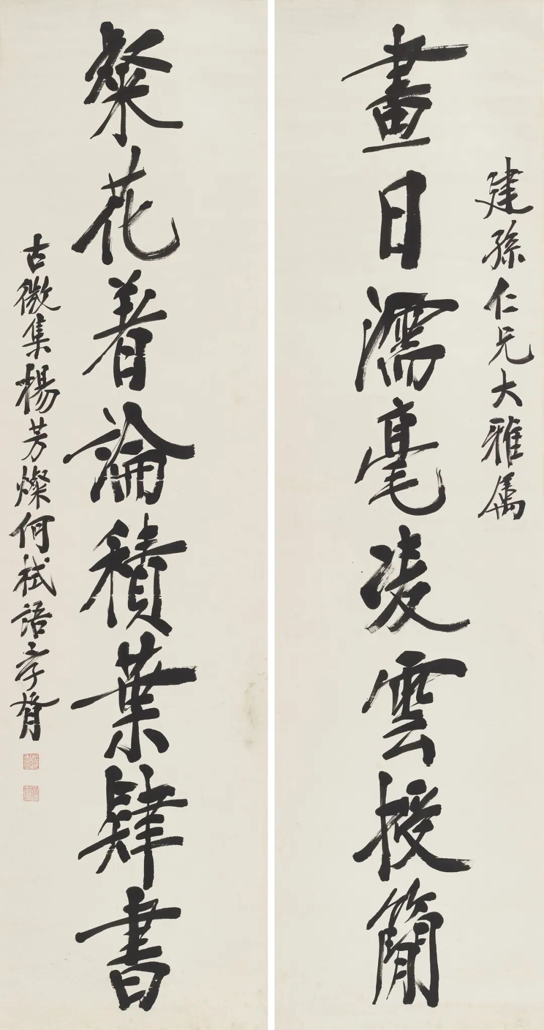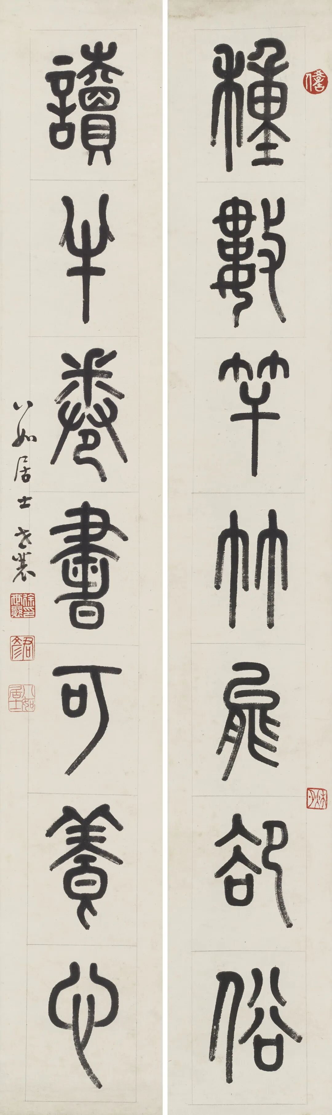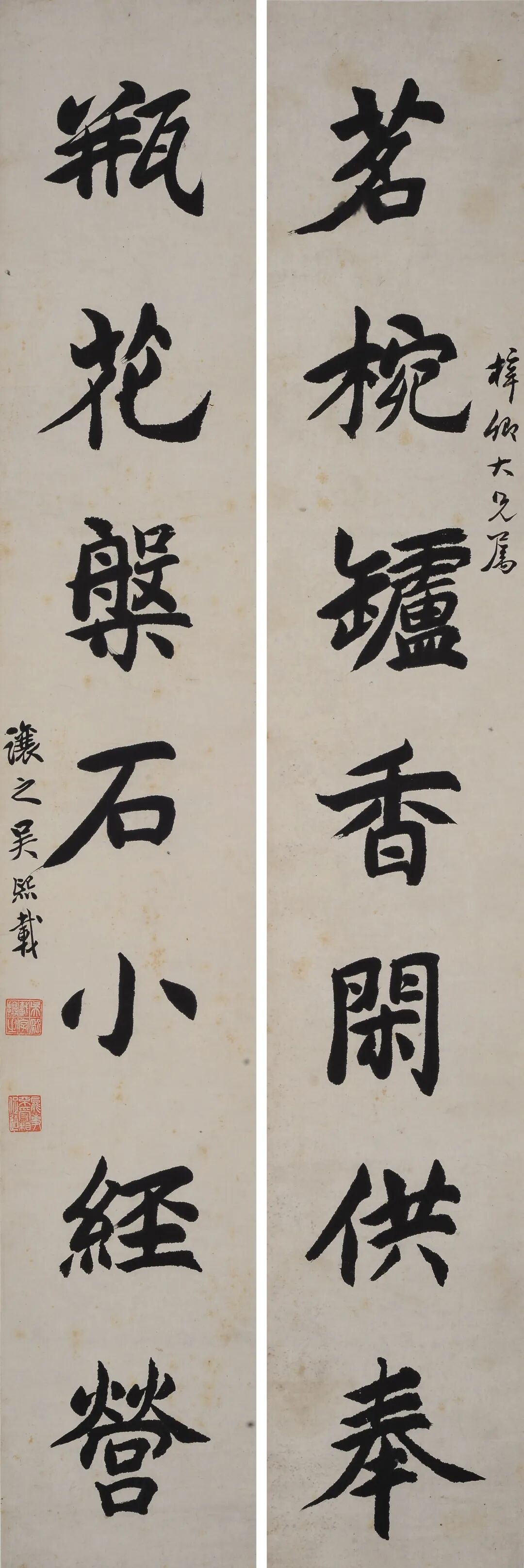 吴熙载《茗椀瓶花联》 104cm×17cm×2