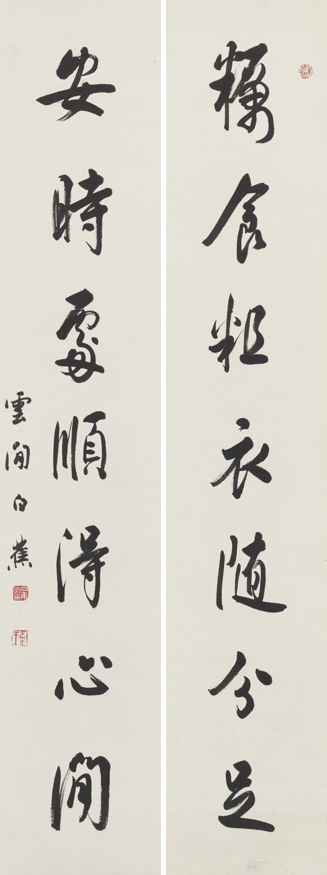 白蕉《粝食安时联》 136cm×25.5cm×2