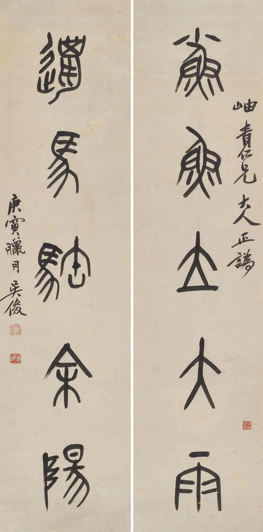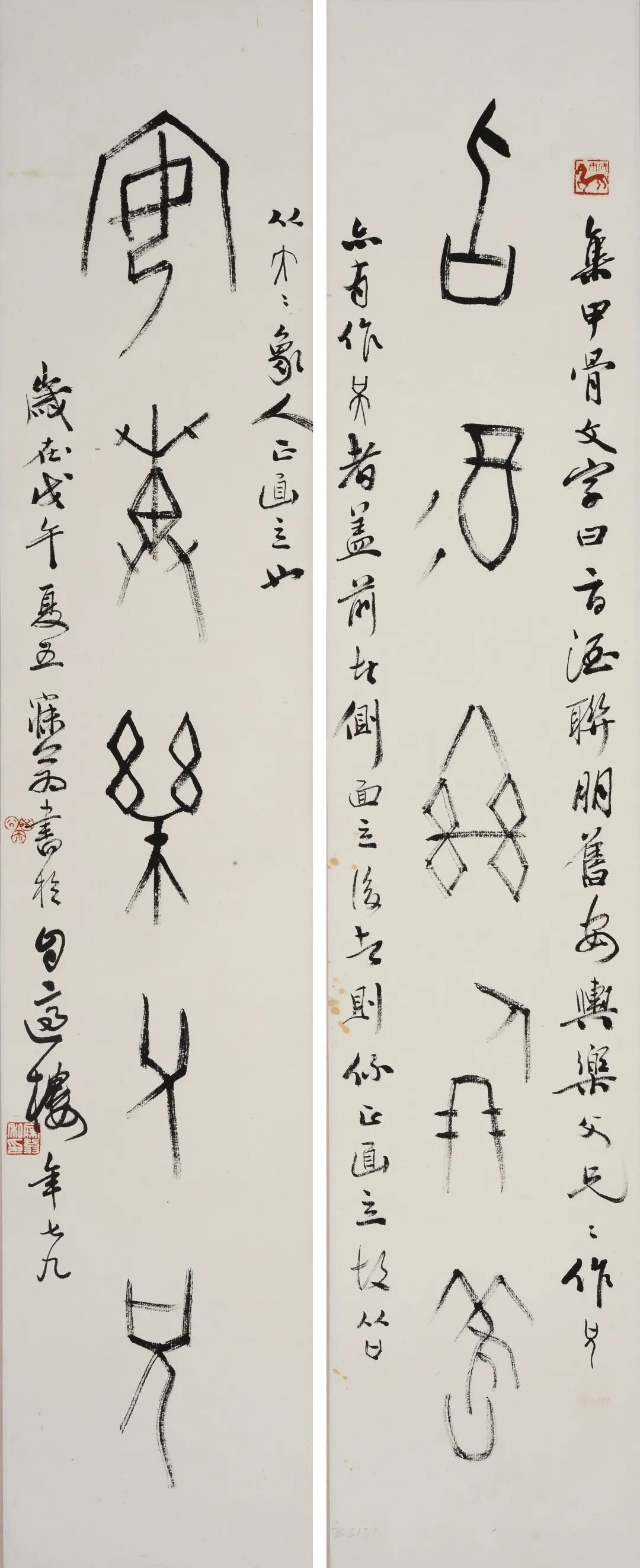 吴昌硕《鲨鱼猎马联》 107cm×26cm×2