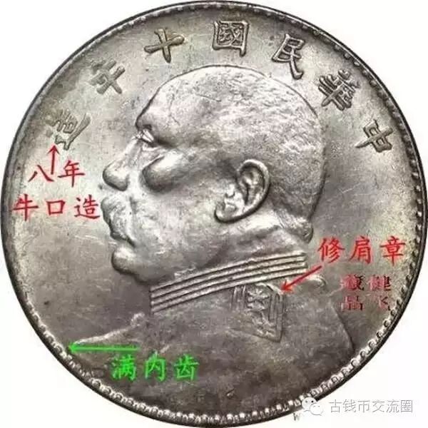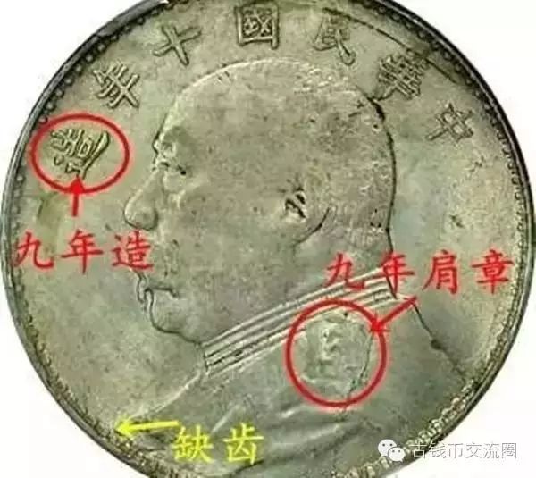 一是八年面改十年混配九年背,头像特征为:胸前不缺内齿,造字为八年牛口造,修肩章;嘉禾特征为九年嘉禾背(实心叶子),俗称牛造实心叶。