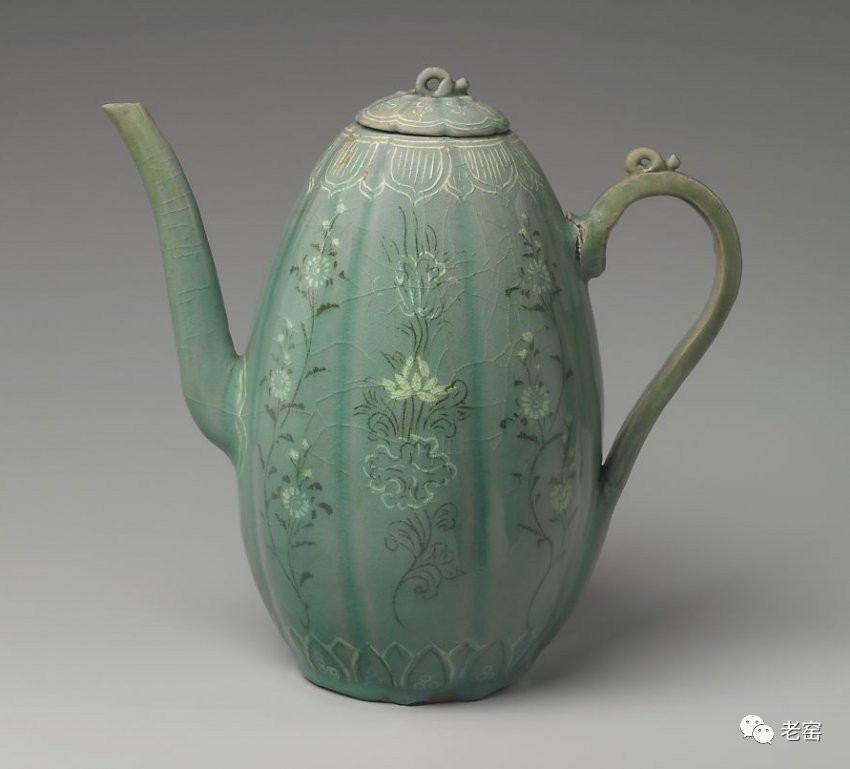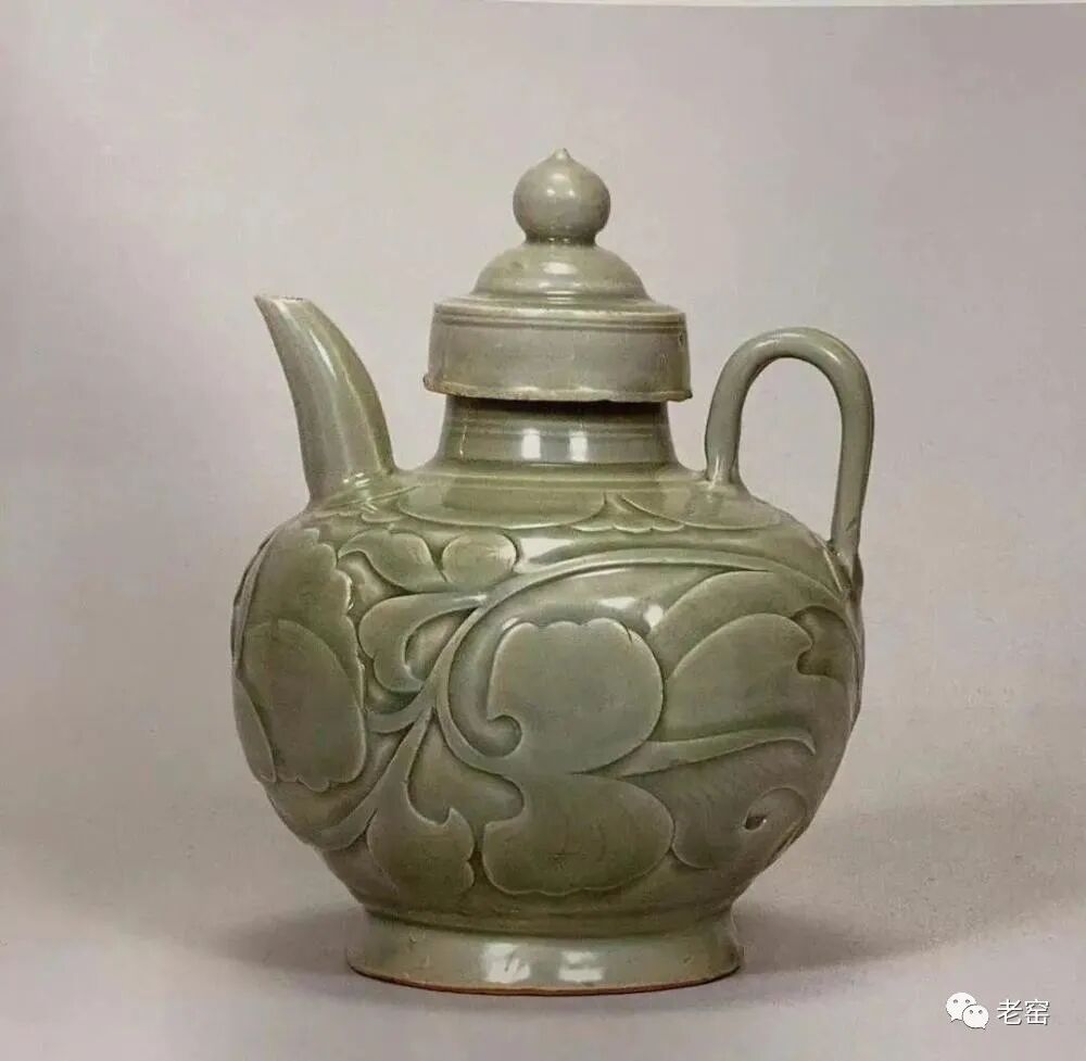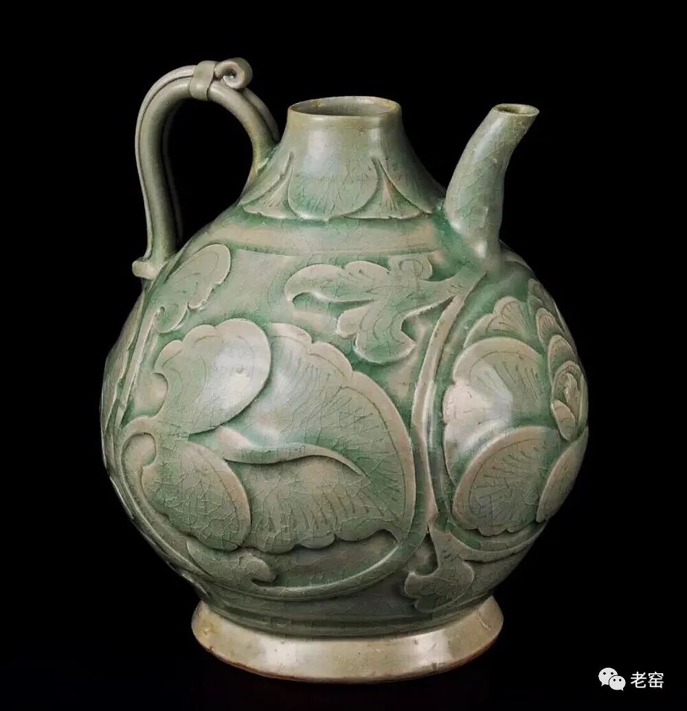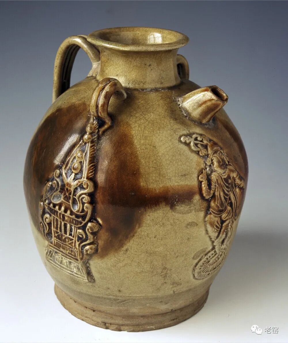北宋 东窑雕花莲纹双流执壶