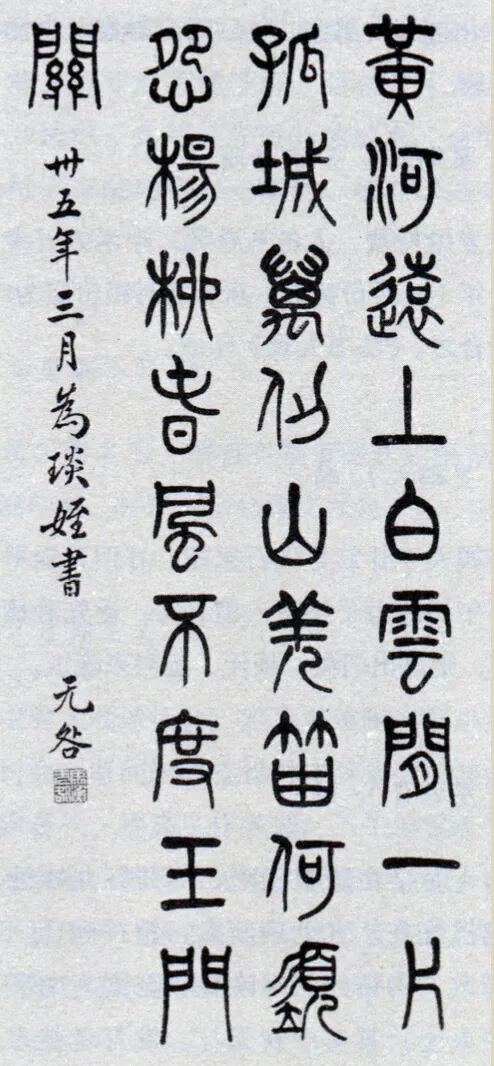 (右)1946 年马衡篆书唐王之涣七言绝句《凉州词》