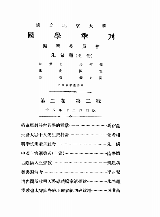 1923年北京大学出版《国学季刊》,揭开了“整理国故”运动大幕,对中国现代学术产生深远影响。马衡曾任编委会委员。