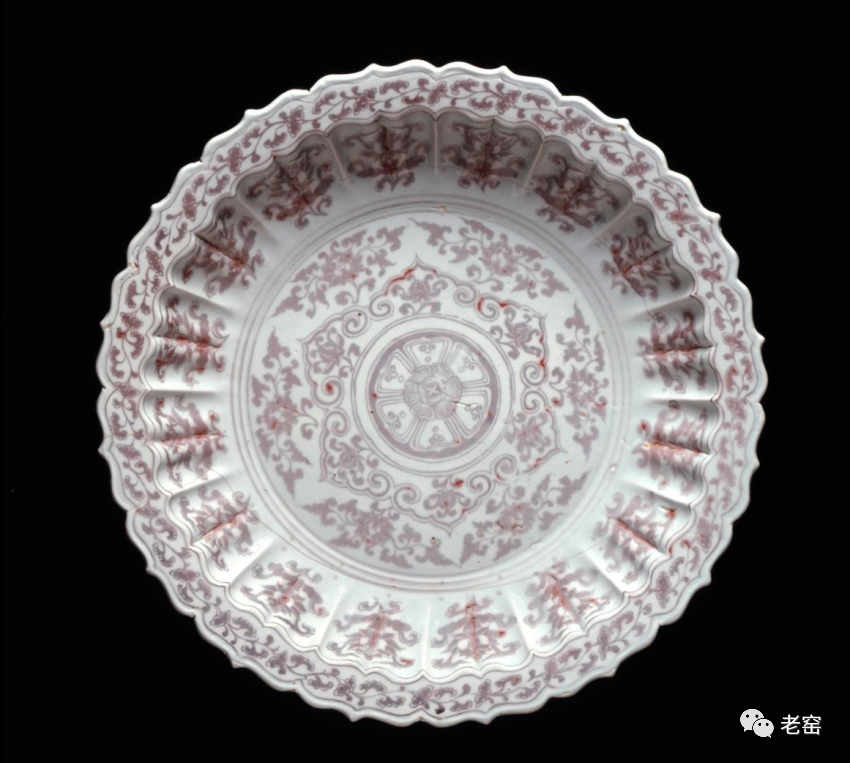 明洪武 釉里红花卉纹葵口盘 大英博物馆藏