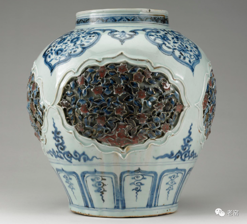 元 青花釉里红开窗花卉纹大罐(正面) 大英博物馆藏