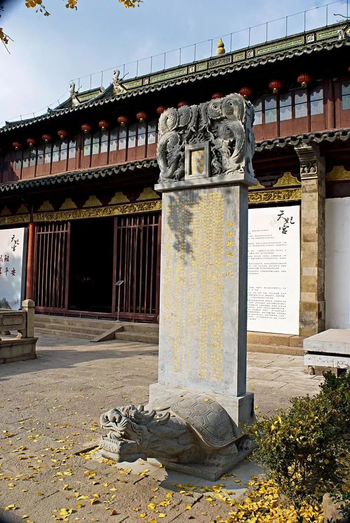 江苏太仓浏河镇刘家港天妃宫“通番事迹碑”。由于太仓海运漕粮始发港的重要地位,元廷在太仓城内外修建了两座供奉海神天妃的庙宇。每年春夏之际,派遣特使前往献祭,祈求海运顺利进行,“通番事迹碑”记载了郑和七次下西洋获神庇佑事。