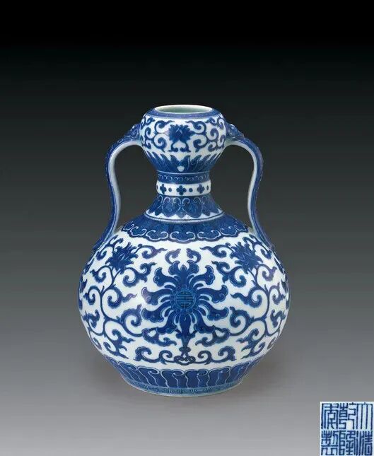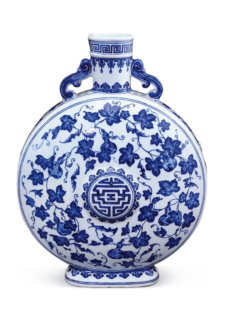清雍正 青花葫芦福寿纹双耳扁瓶