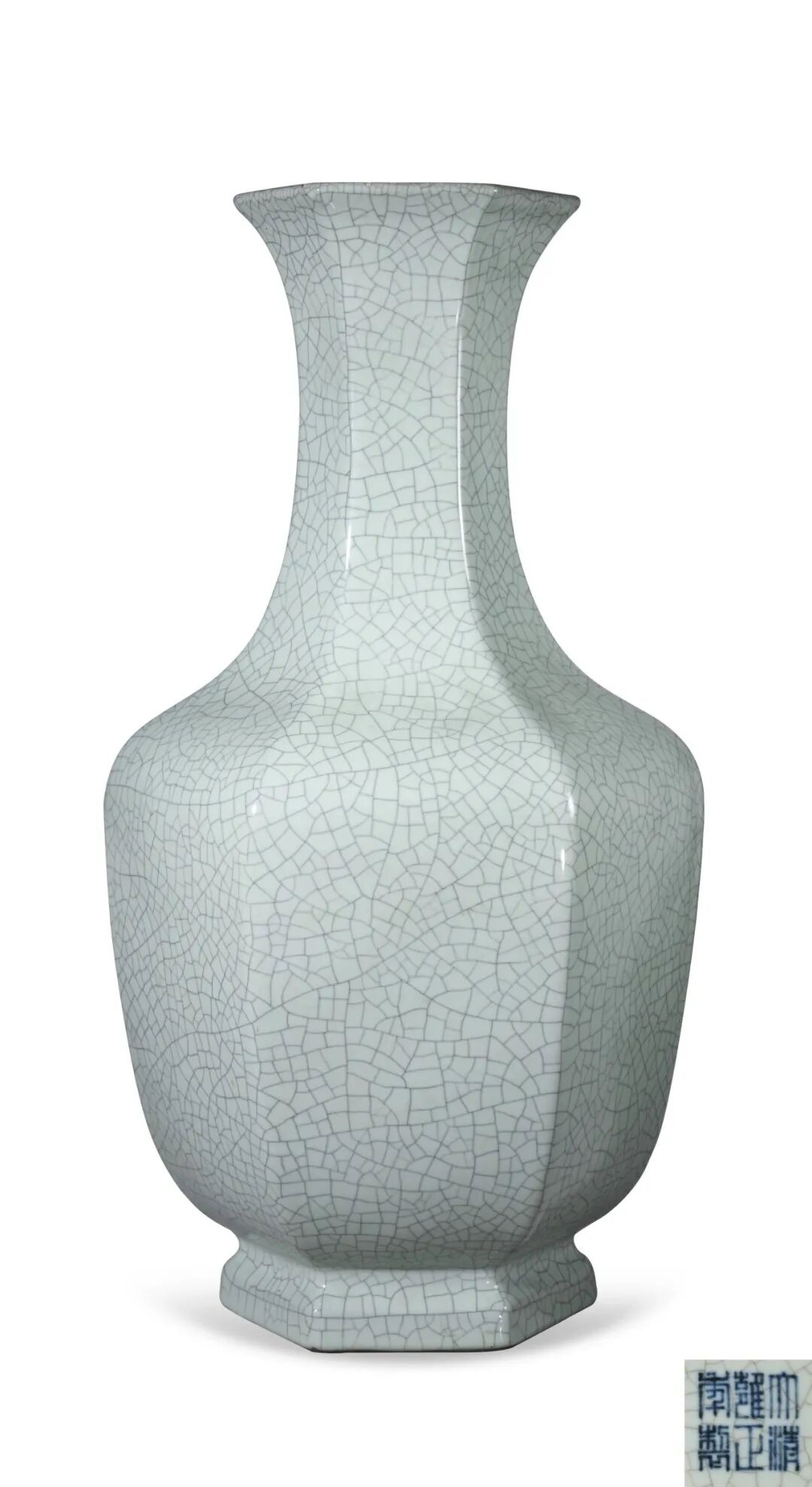 清雍正 仿哥釉长颈六方大瓶