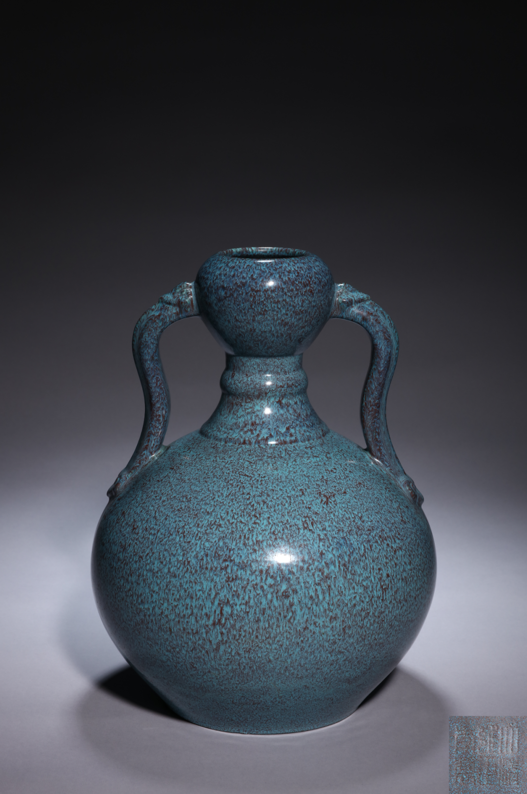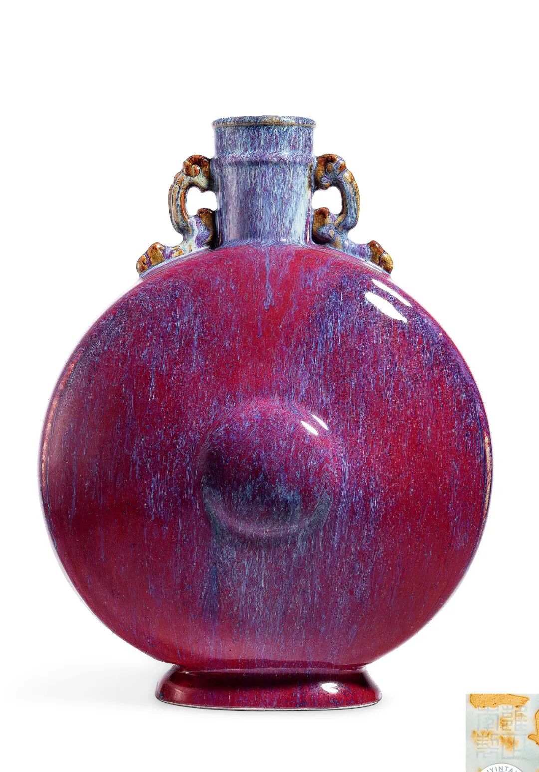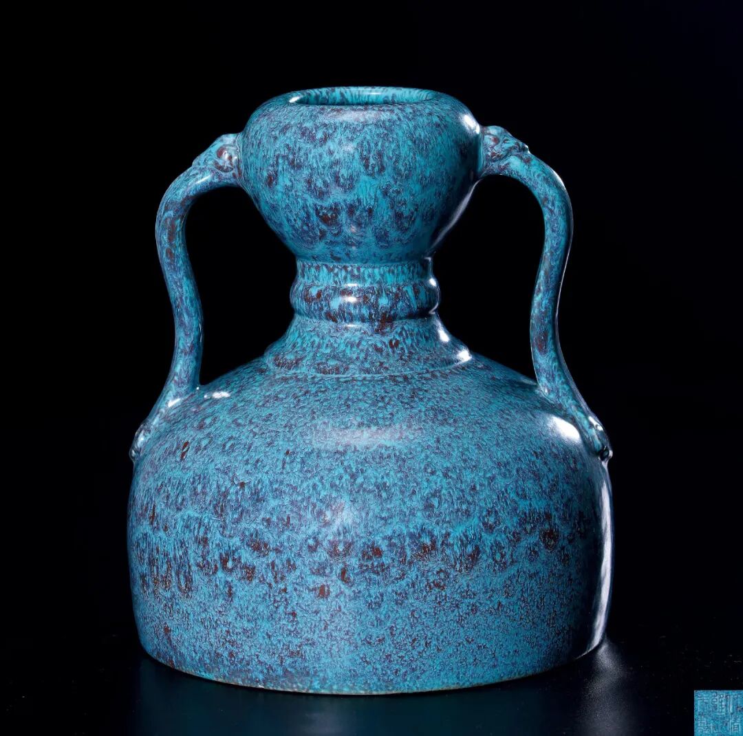 清乾隆 窑变釉双环蒜头瓶