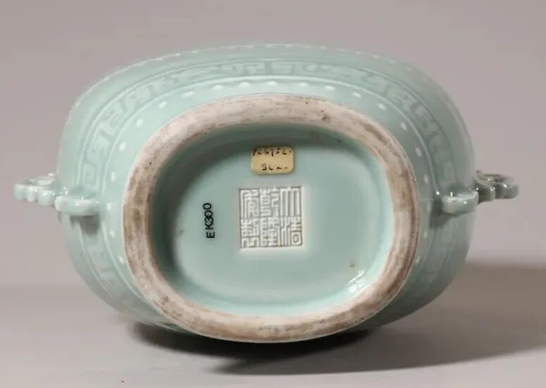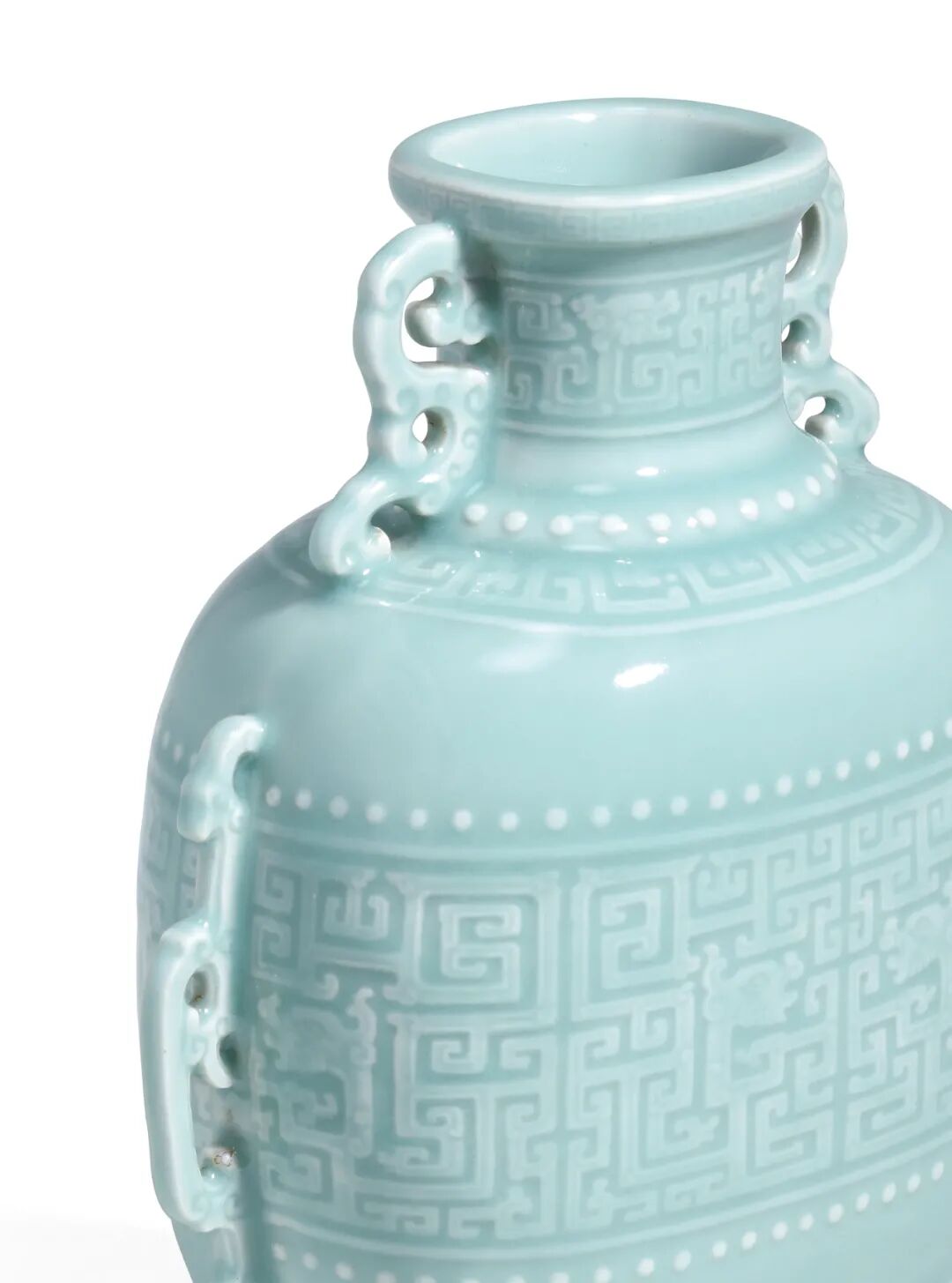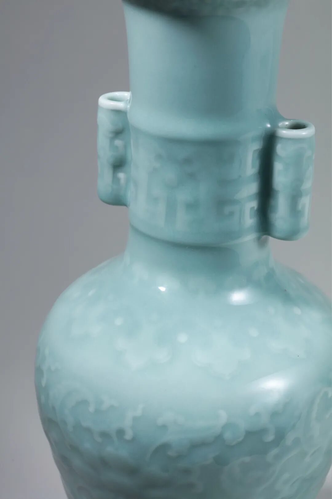 清乾隆粉青釉模印夔龙纹双耳扁壶