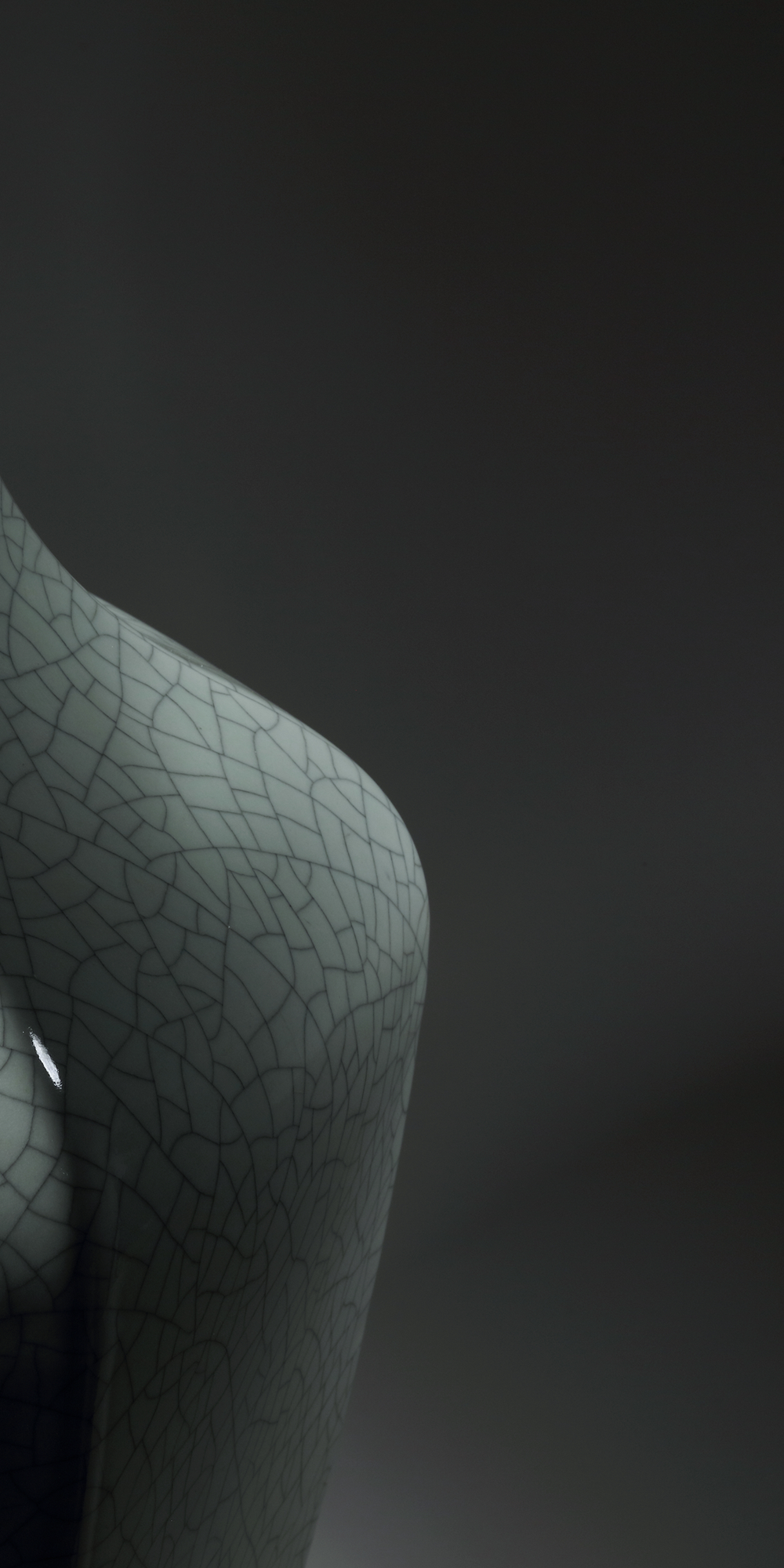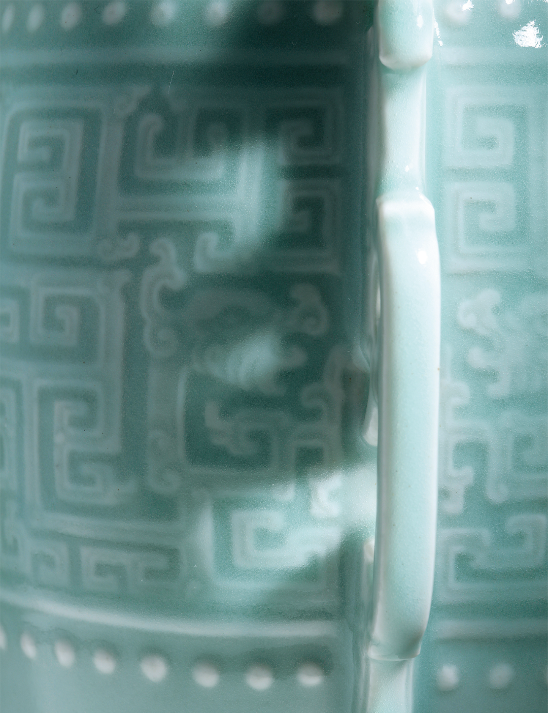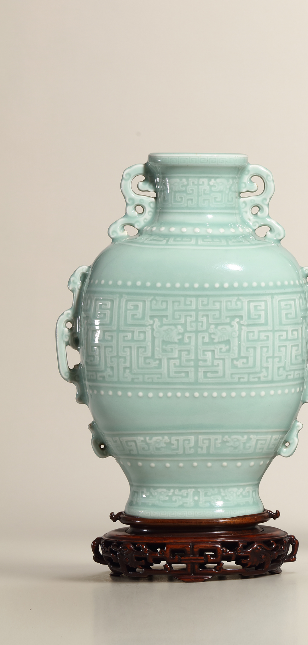 清乾隆粉青釉模印夔龙纹双耳扁壶