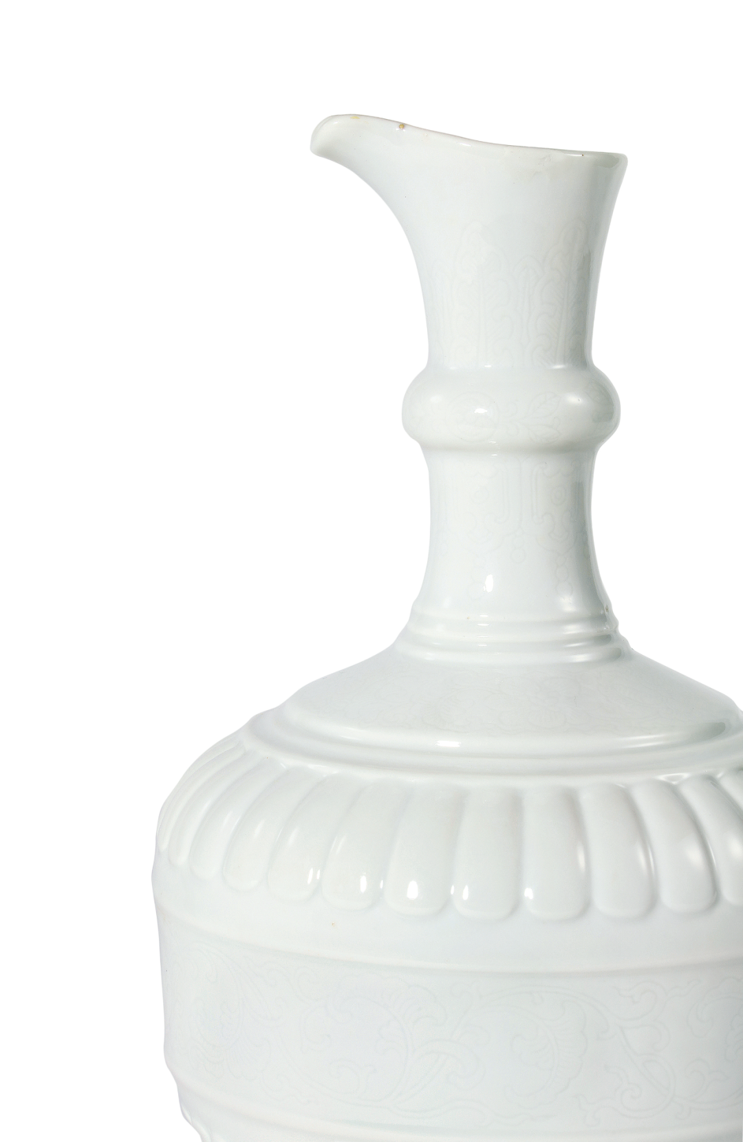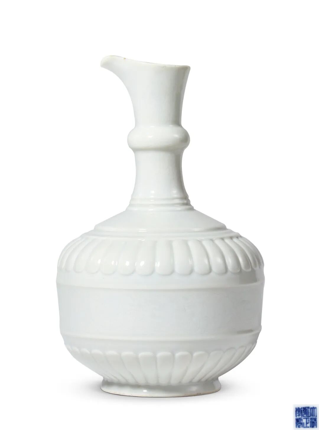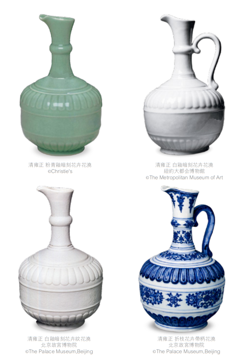 清雍正 白釉模印菊瓣刻缠枝花卉纹花浇