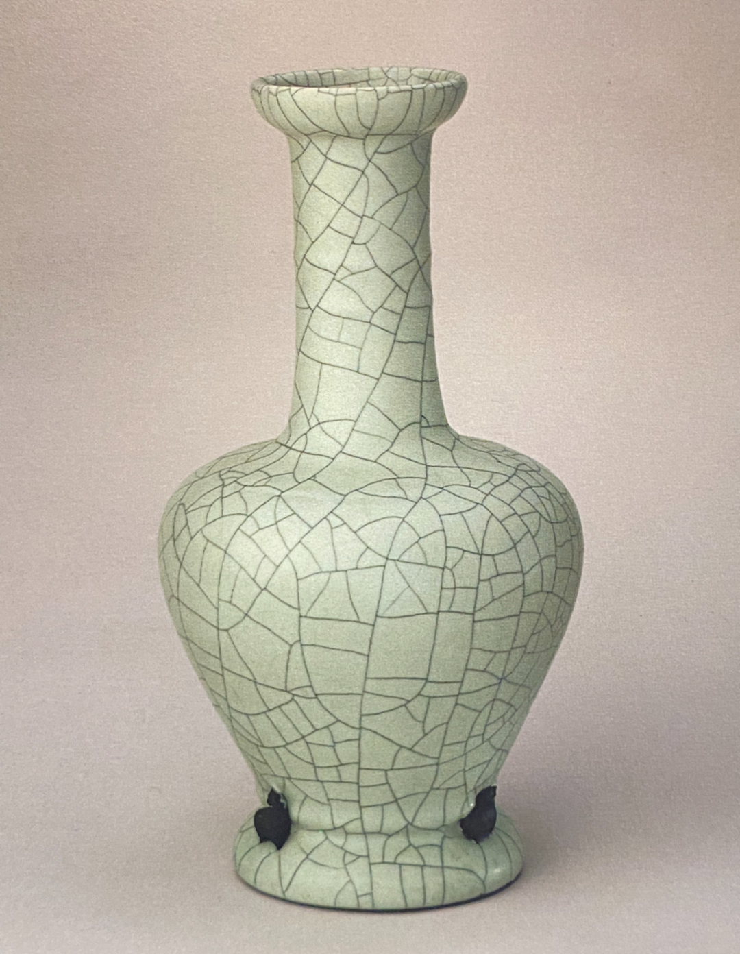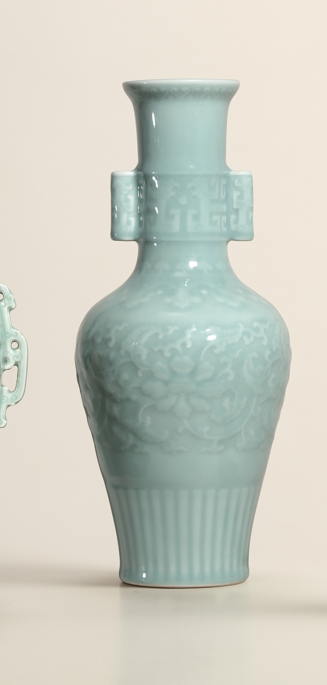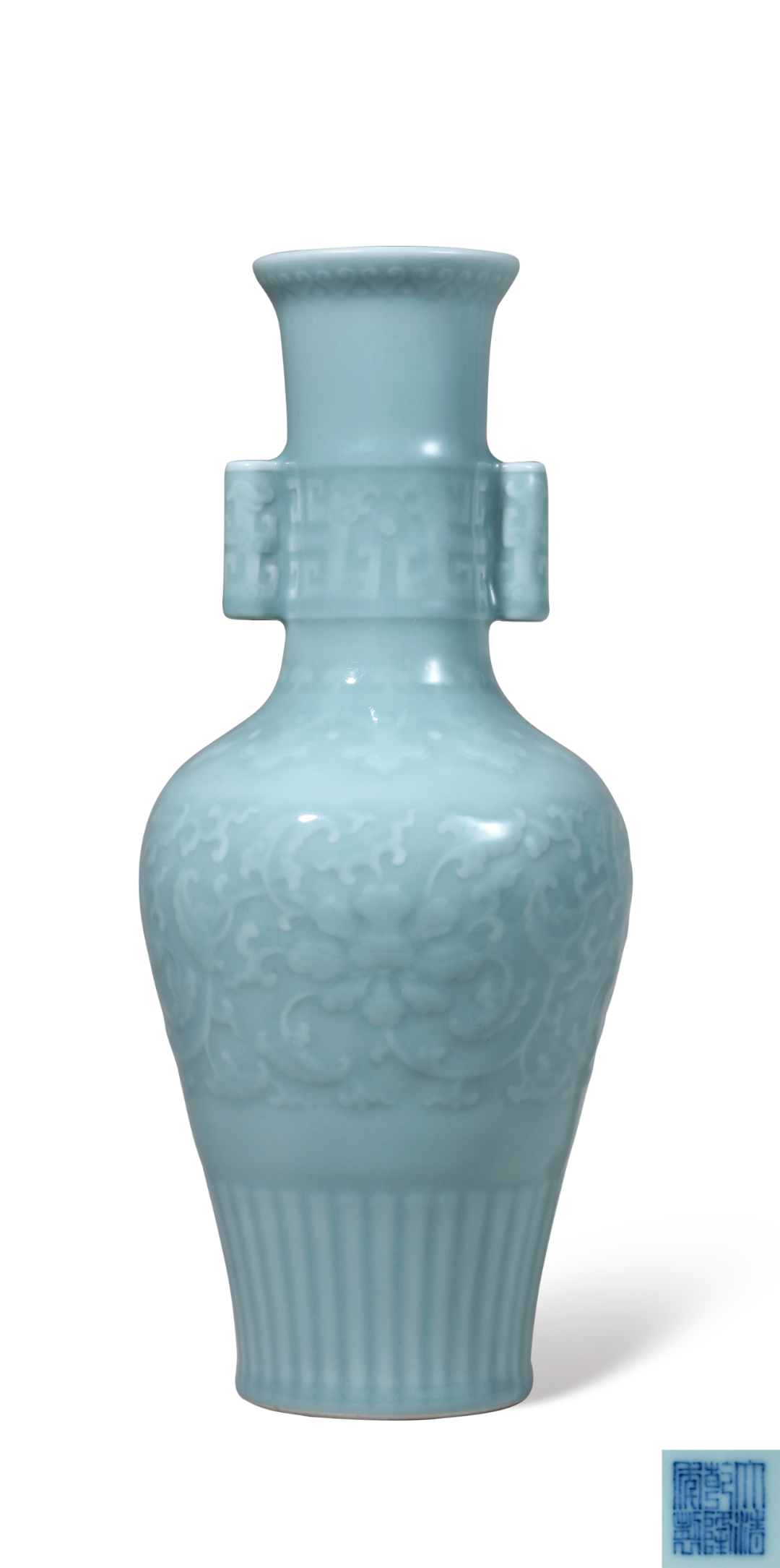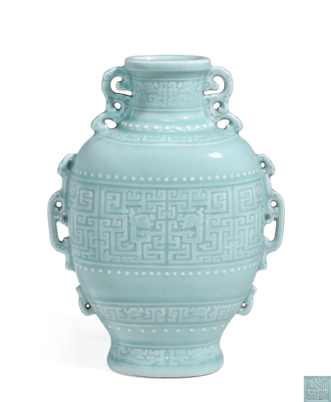 清乾隆 粉青釉印花卉纹贯耳瓶