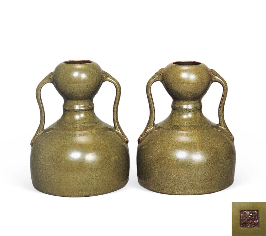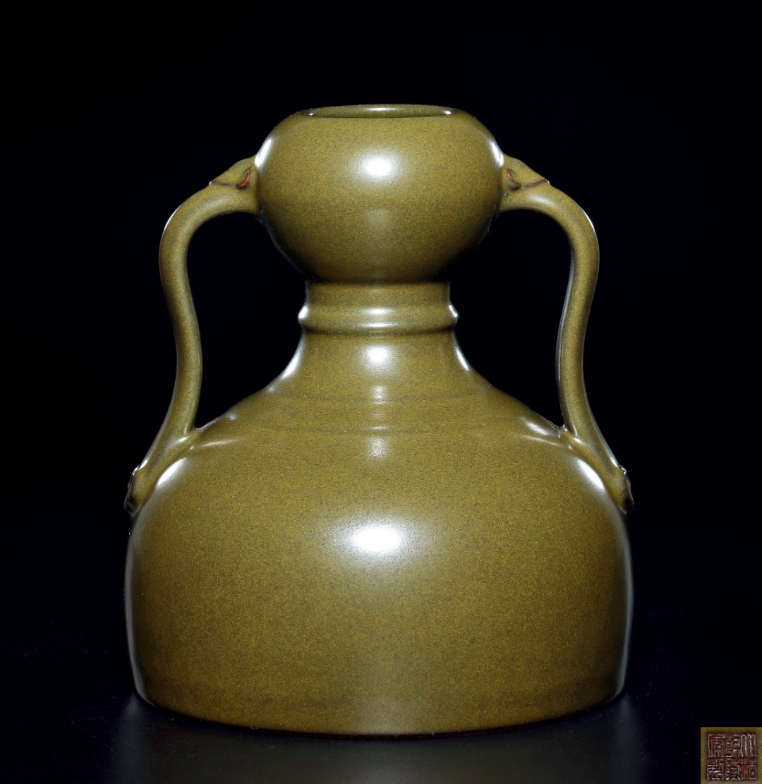 清乾隆 茶叶末釉绶带如意耳葫芦尊