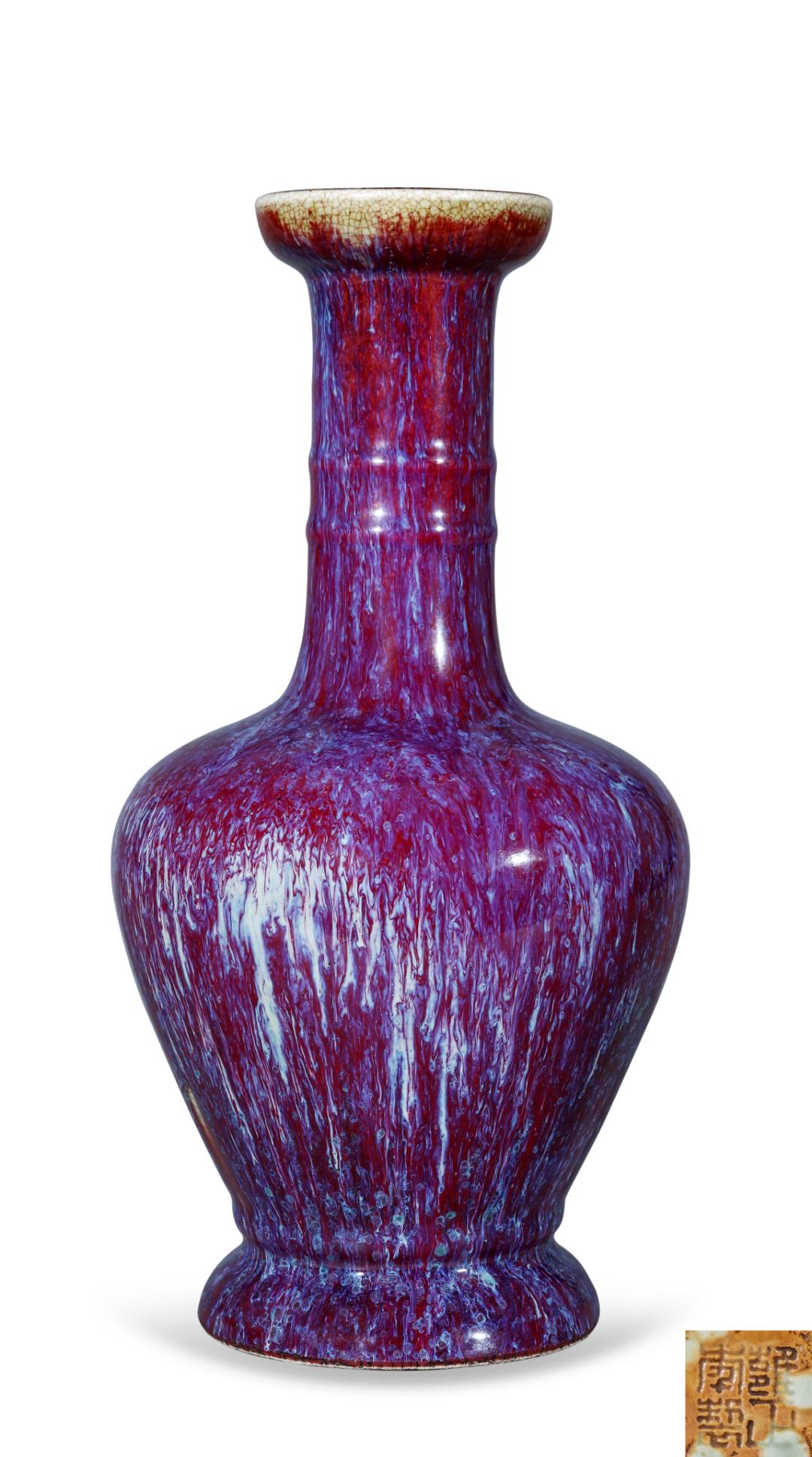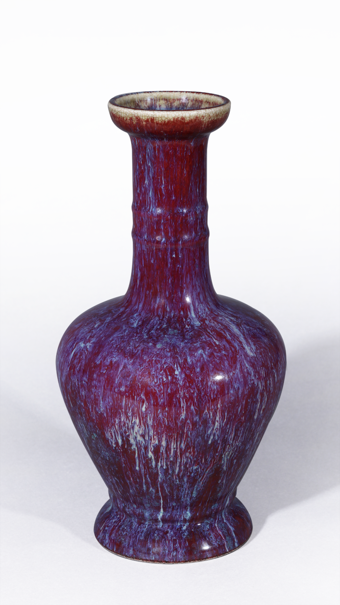 清雍正 窑变釉盘口弦纹瓶