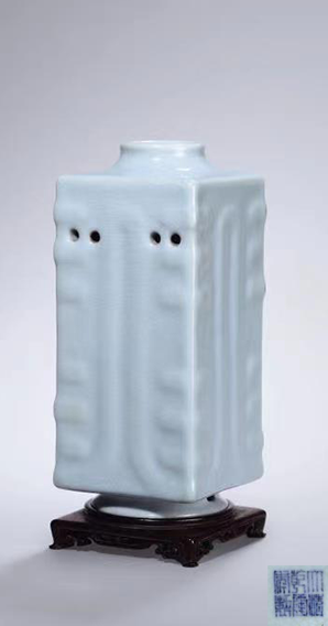 清乾隆 仿汝釉镂空穿带琮式瓶