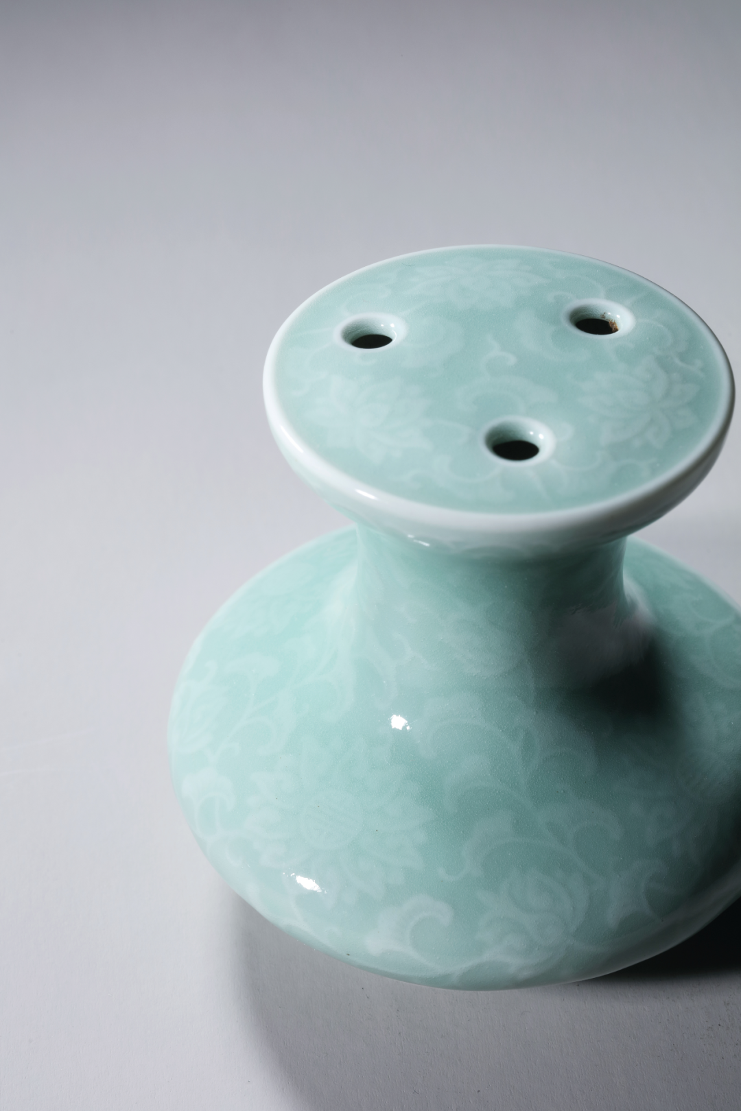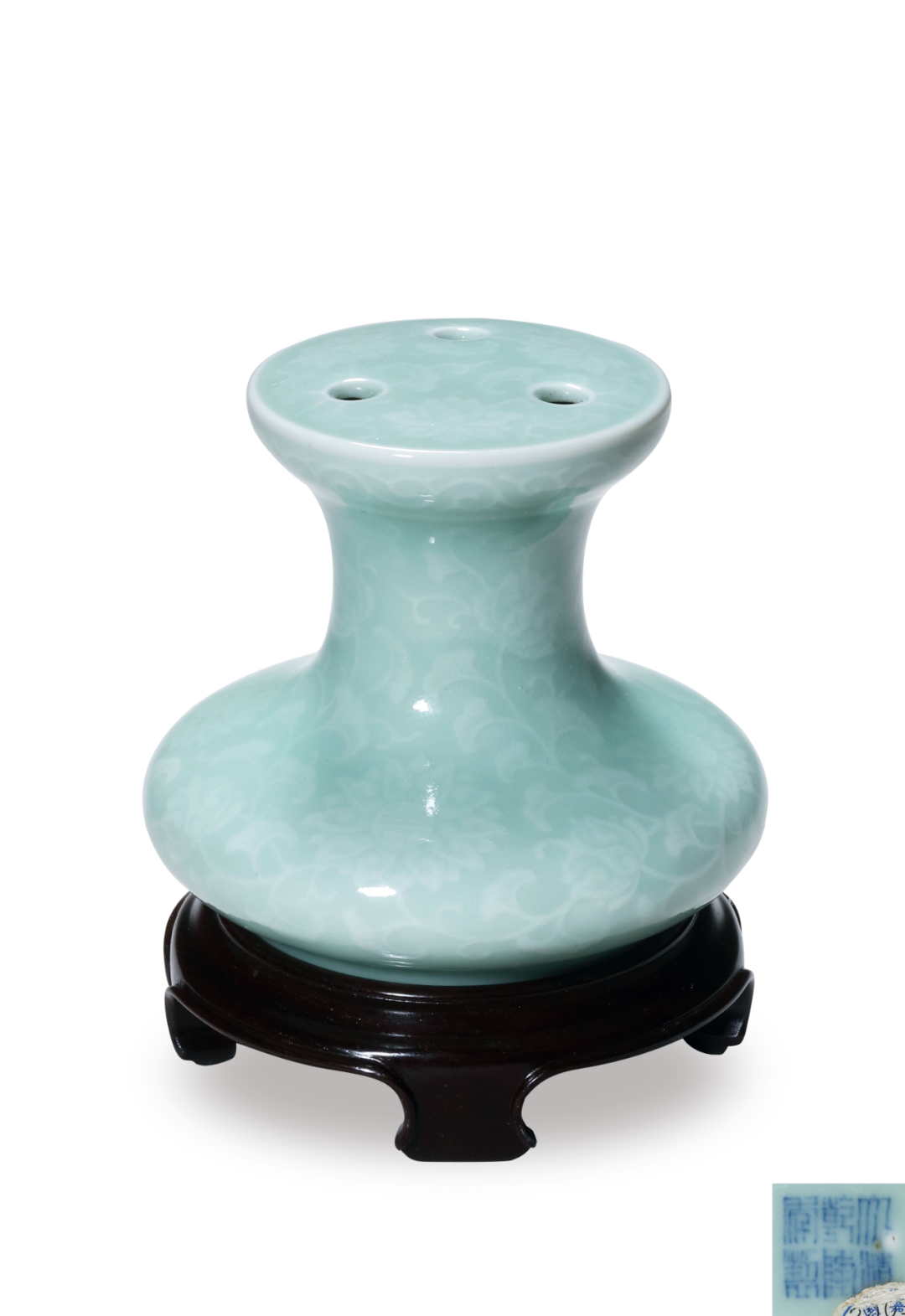 清乾隆 粉青釉印万寿菊三孔小花插