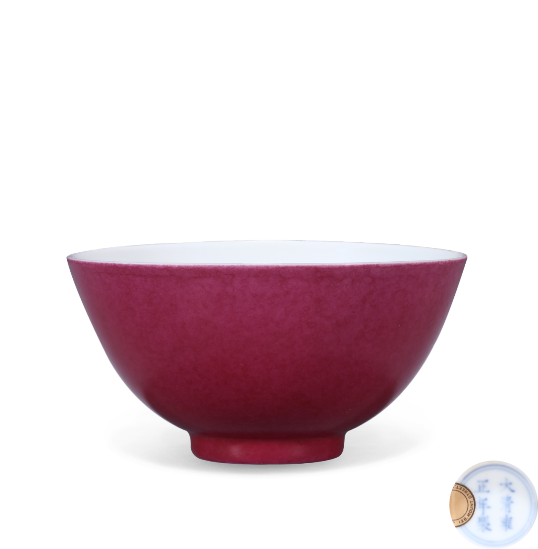 清雍正 金红胭脂水釉茶圆