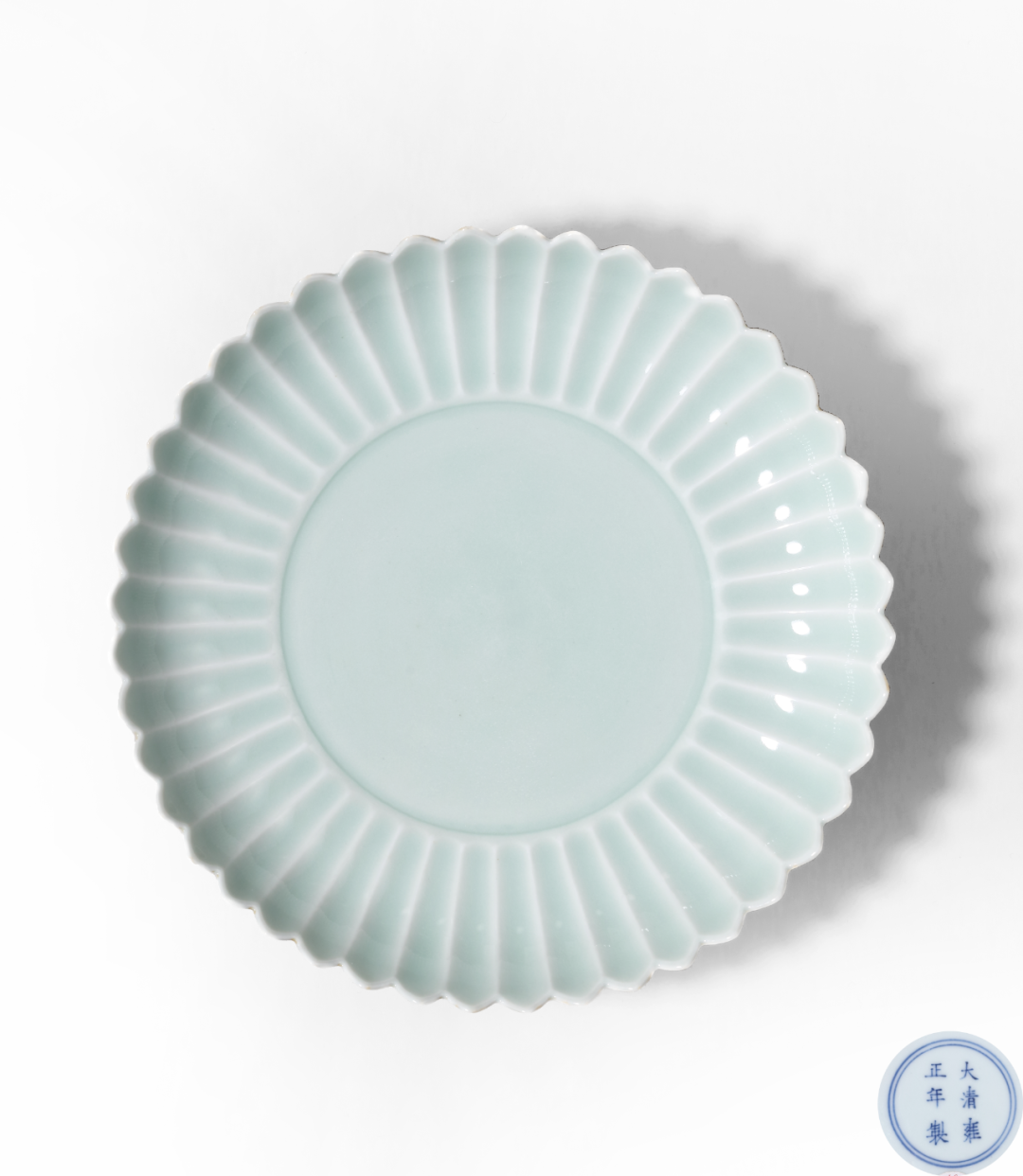 清雍正 粉青釉菊瓣盘
