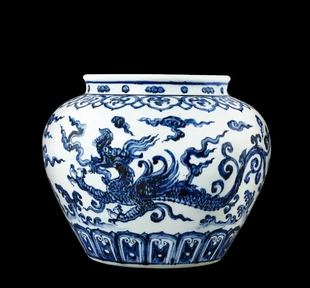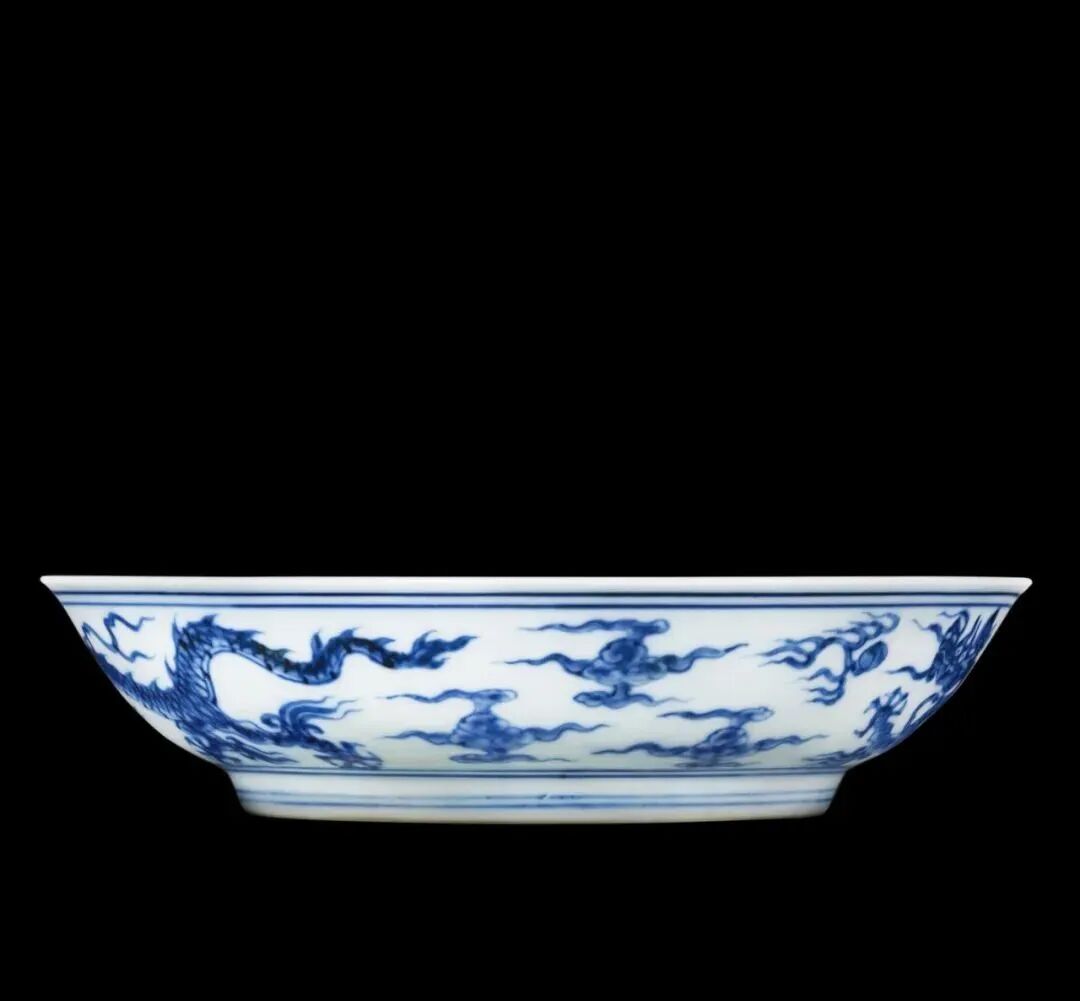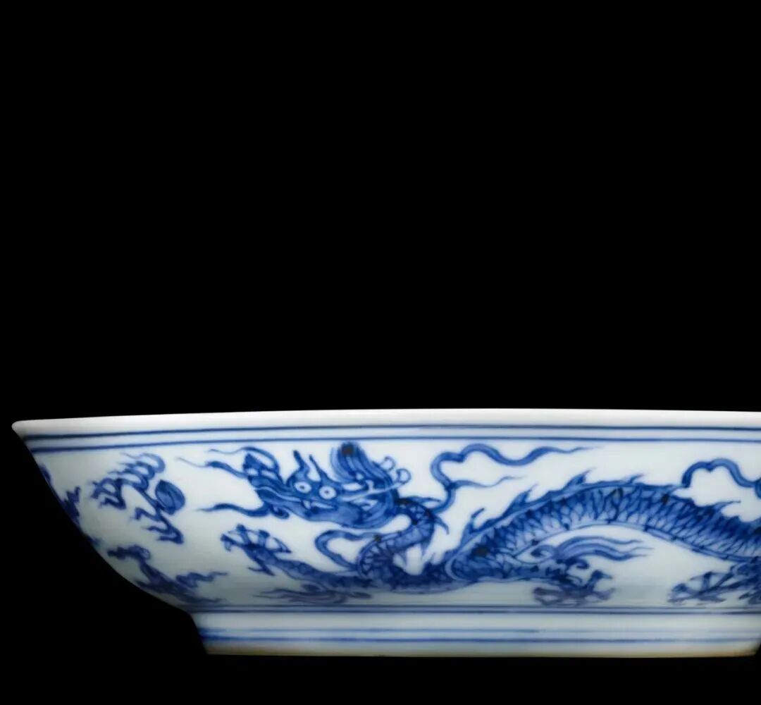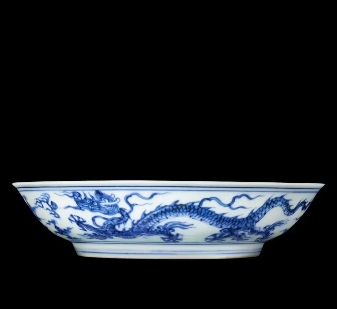 明成化 青花双龙赶珠纹盘 《大明成化年制》款