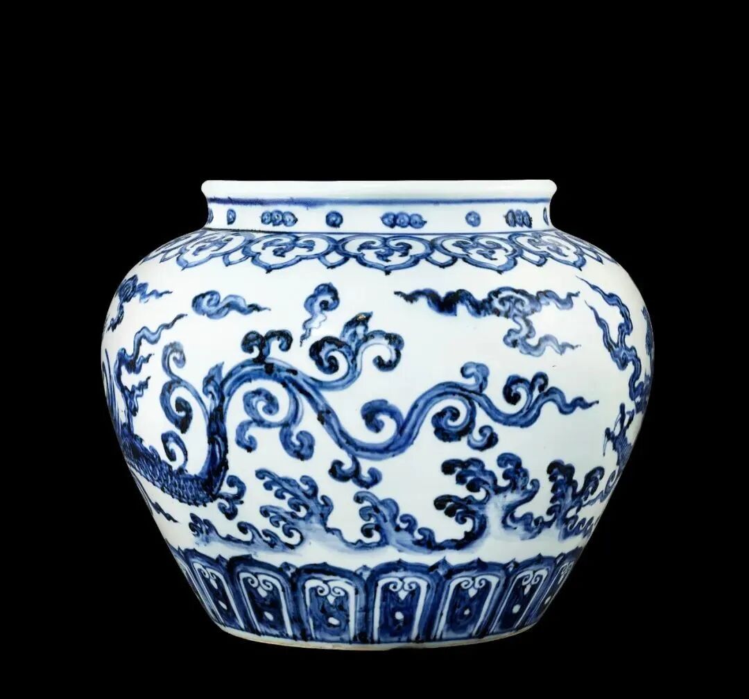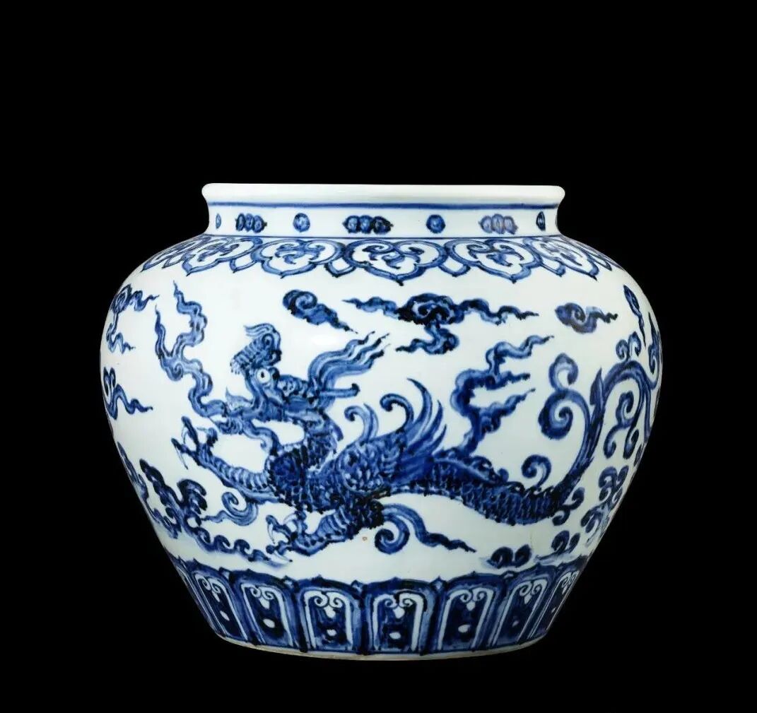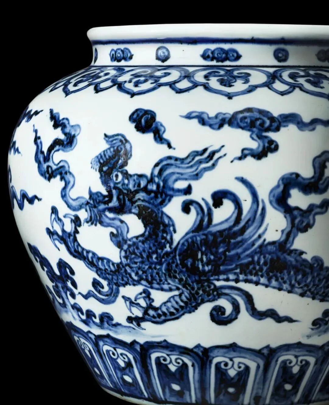 明成化 青花双龙赶珠纹盘 《大明成化年制》款