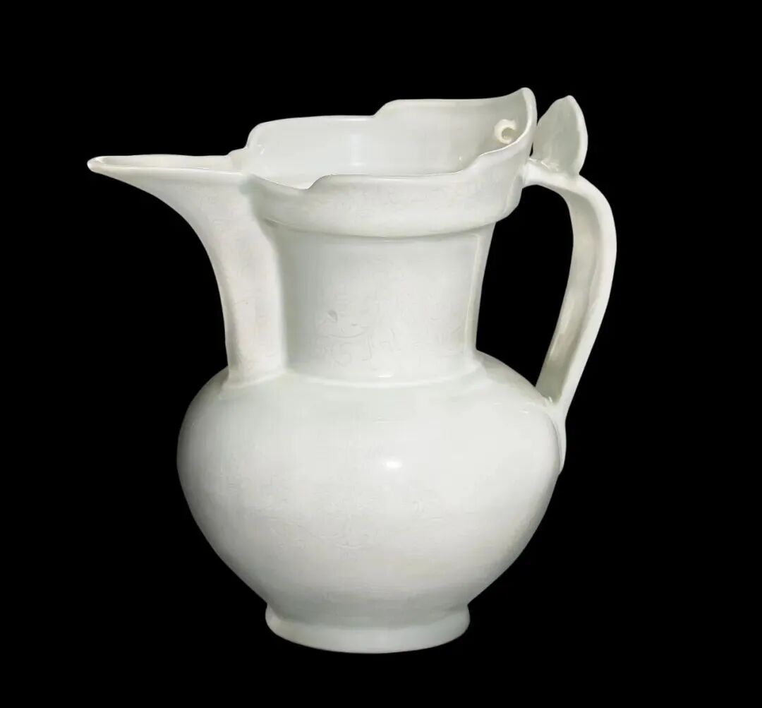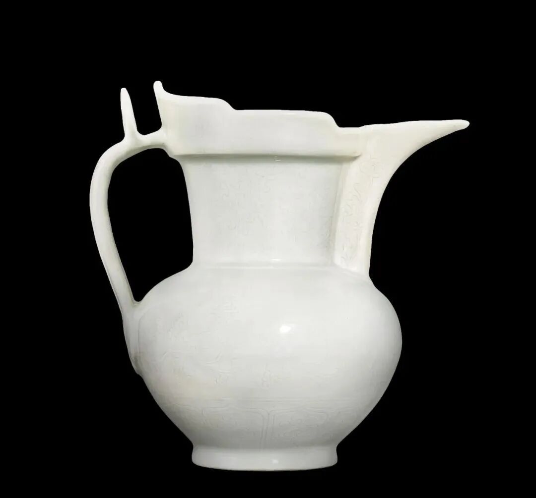 明永乐 甜白釉暗花缠枝莲八吉祥纹僧帽壶