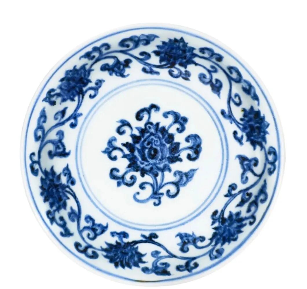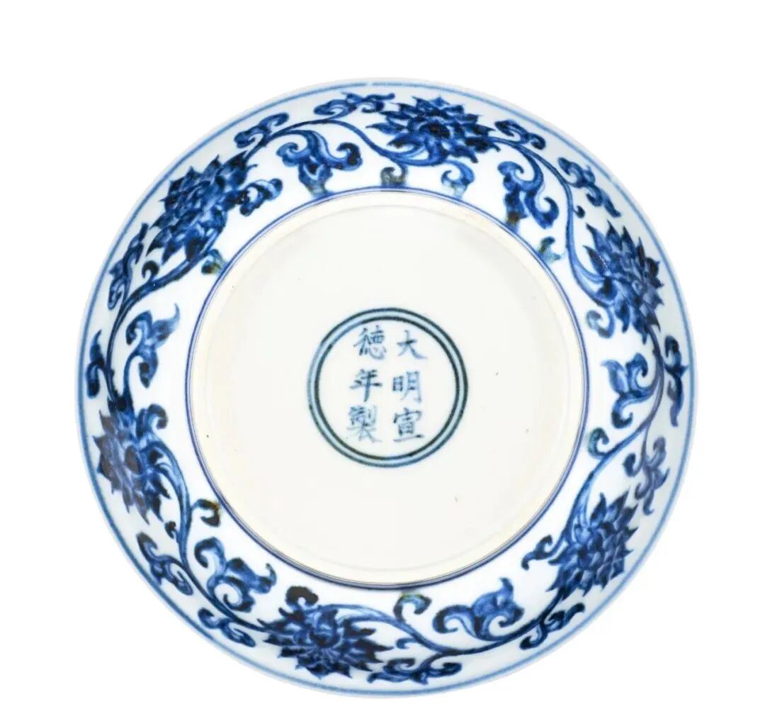 明宣德 青花番莲纹小盘 《大明宣德年制》款