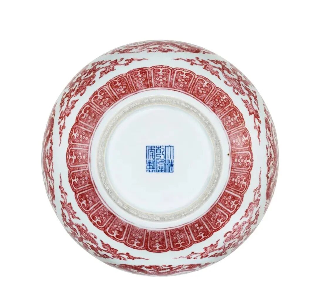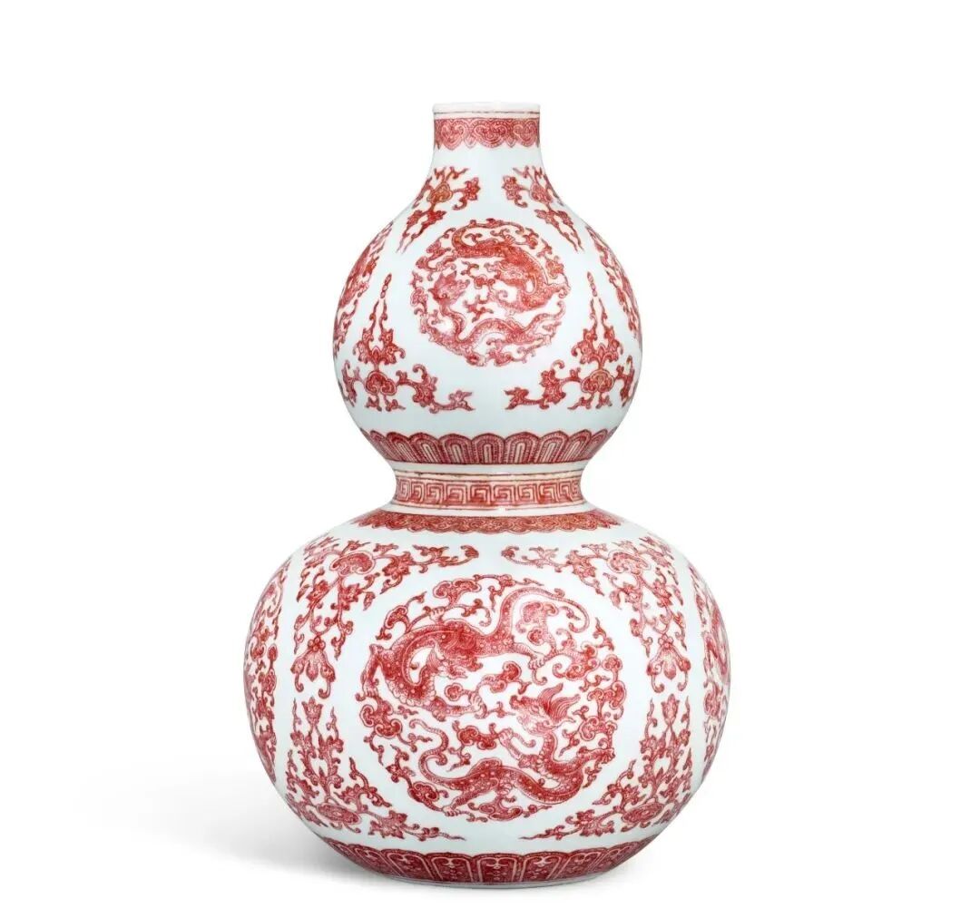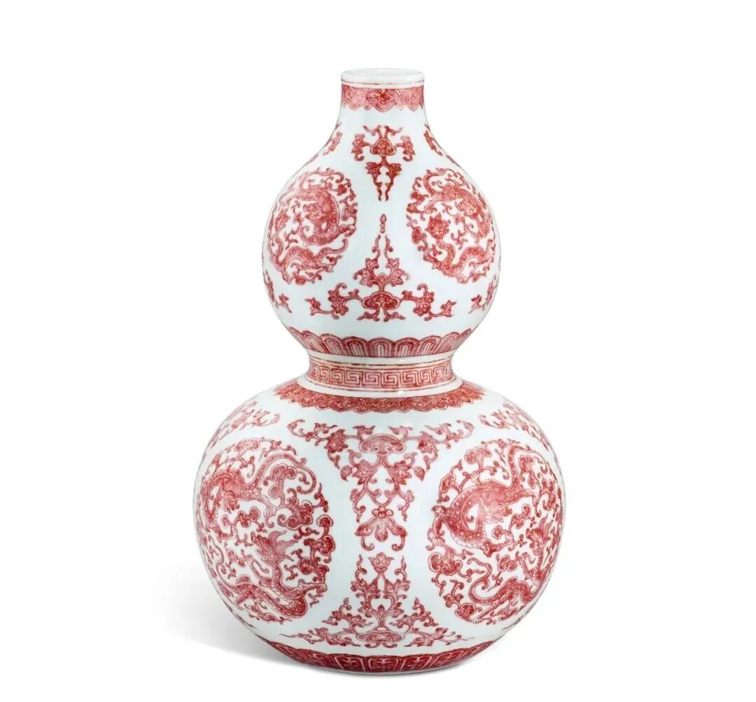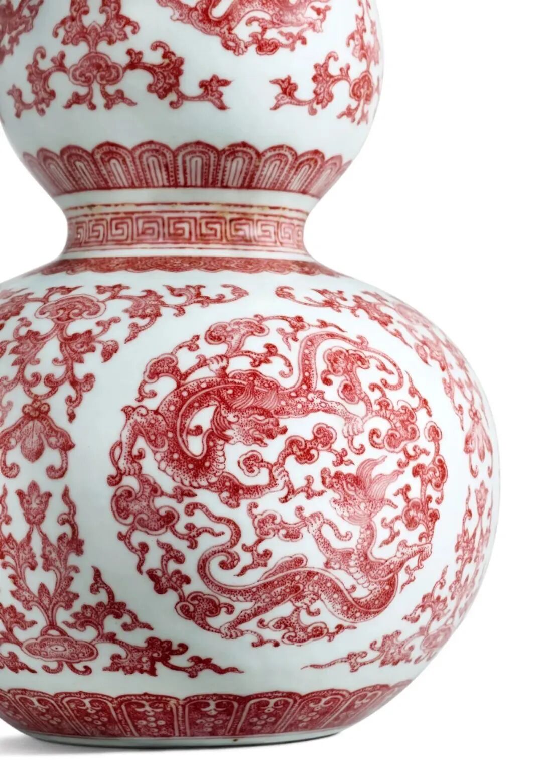清乾隆 釉里红螭龙灵芝葫芦瓶 《大清乾隆年制》款