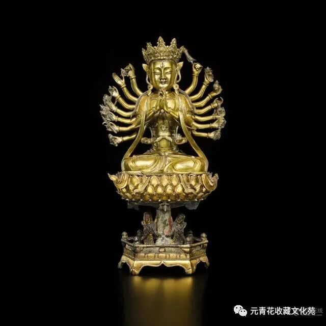 Lot 54 明十六/十七世纪 鎏金铜观音菩萨坐像