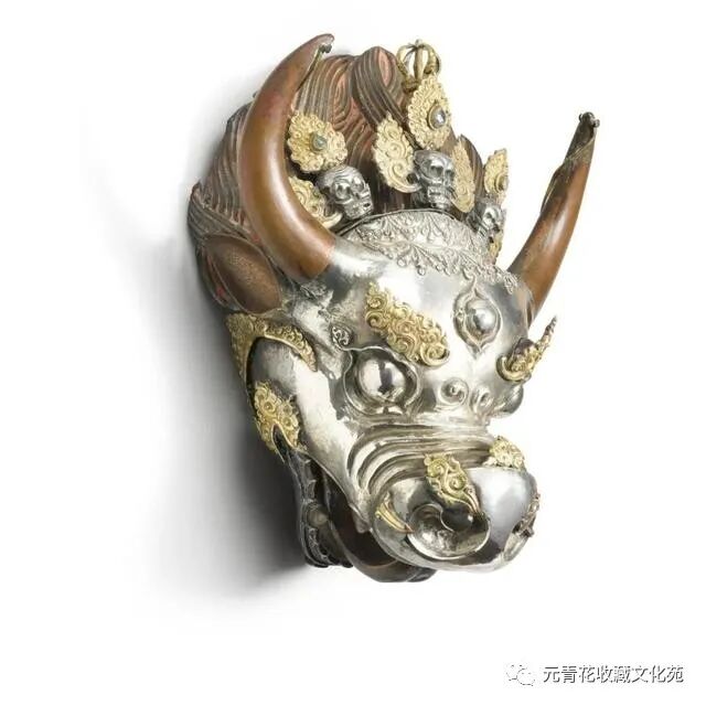 Lot 51 藏传 十八/十九世纪 银捶揲局部鎏红铜牛首