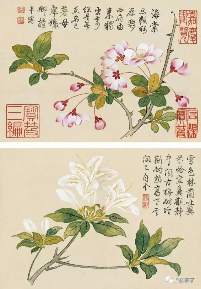 (清 钱维城 海棠花、白杜鹃)