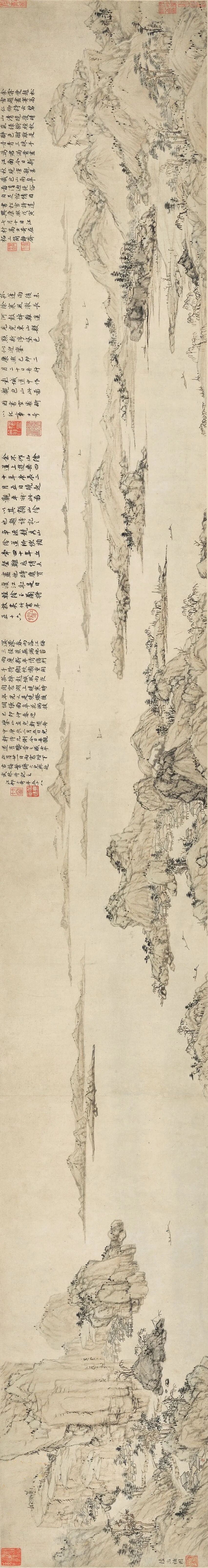 《南皋图》清初为大藏家高士奇(1645-1703)所有,今拟订画卷名称即据高氏题记第一则 “观旧藏包山《南皋图》” 数字确定。高氏于画卷自题四则,自康熙戊寅(1698)七月、己卯(1699)二月、庚辰(1700)二月至壬午(1702)五月,凡五年四记,随游行箧,屡屡舟车开卷赏玩,足见珍视眷爱之情。高江村藏而能赏,赏而能记,记而能传,于此又见古人适心雅兴之情。
