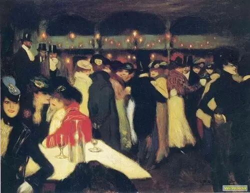 十九岁生日那天,毕加索在一个画展上第一次见到了印象派作品。被深深吸引之后,他画了红磨坊——这个舞厅因出现在印象派名家雷诺阿和劳特雷克的作品中而出名。
