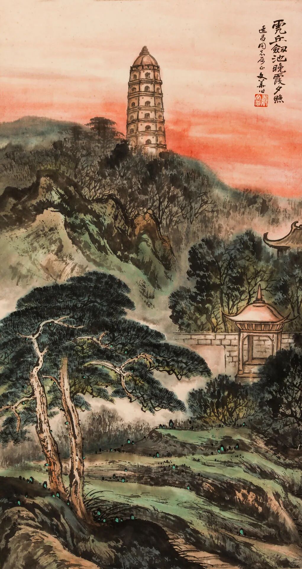 题识:虎丘剑池晚霞夕照。廷昌同志属正,文华作。