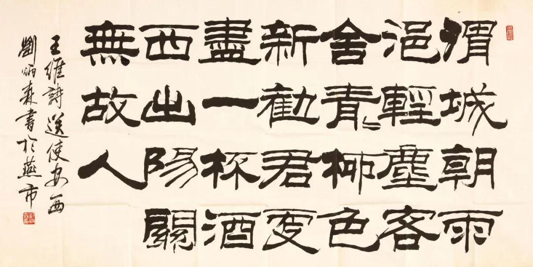 题识:王维诗送使安西,刘炳森书于燕市。