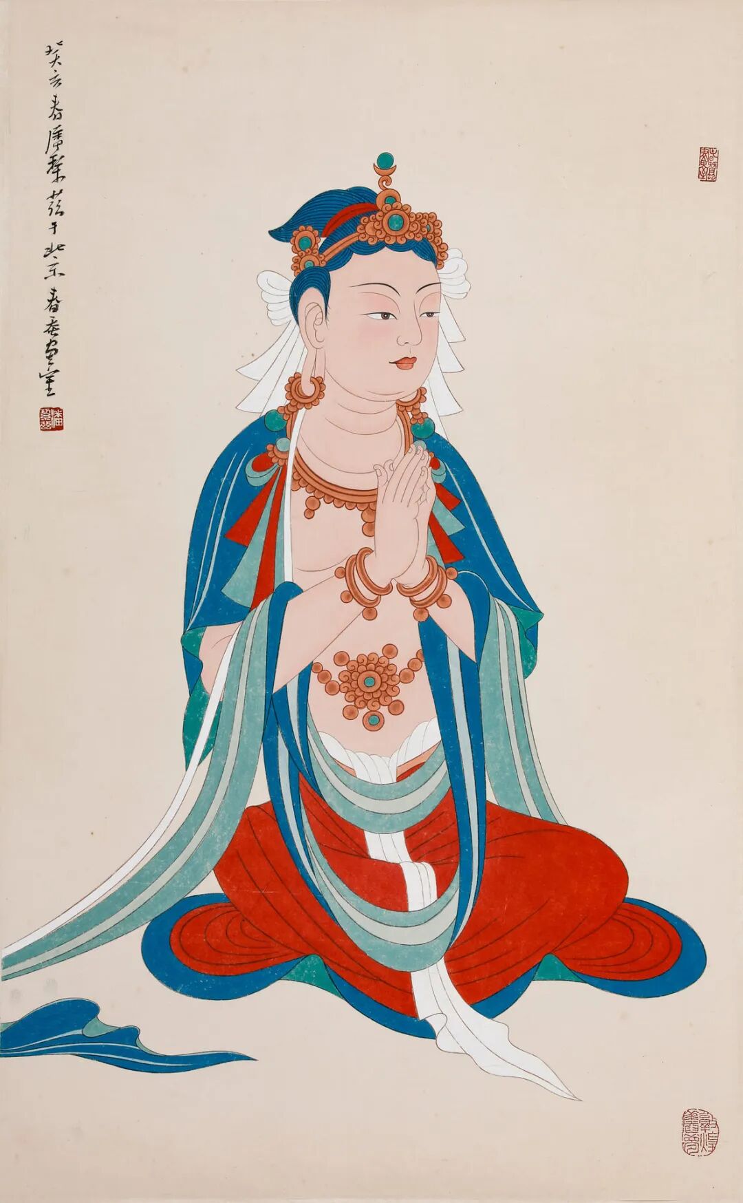 钤印:潘絜兹、春蚕画室、敦煌旧梦