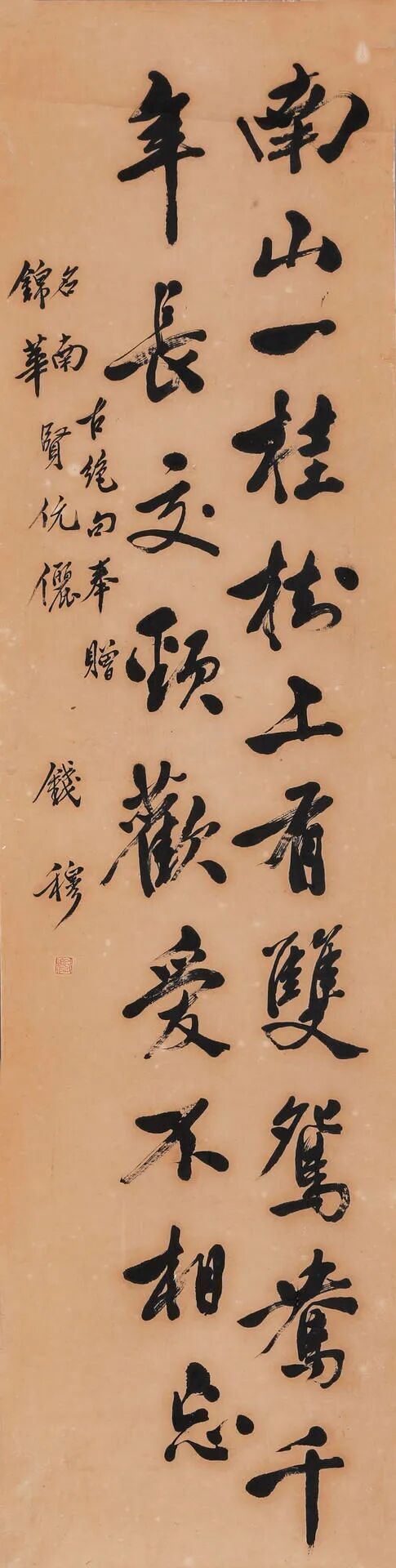 题识:名南、钱华,古绝句奉赠贤伉俪,钱穆。