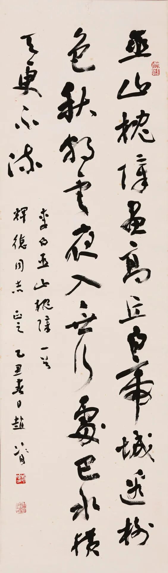 题识:巫山枕障画高丘,白帝城边树色秋。朝云夜入无行处,巴水横天更不流。李白《巫山枕障》一首,辉德同志正之,乙丑春日赵冷月。