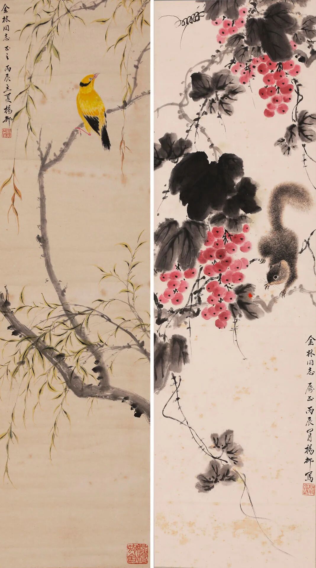 钤印:杨邨大年、绿杨村舍、杨邨六十后作