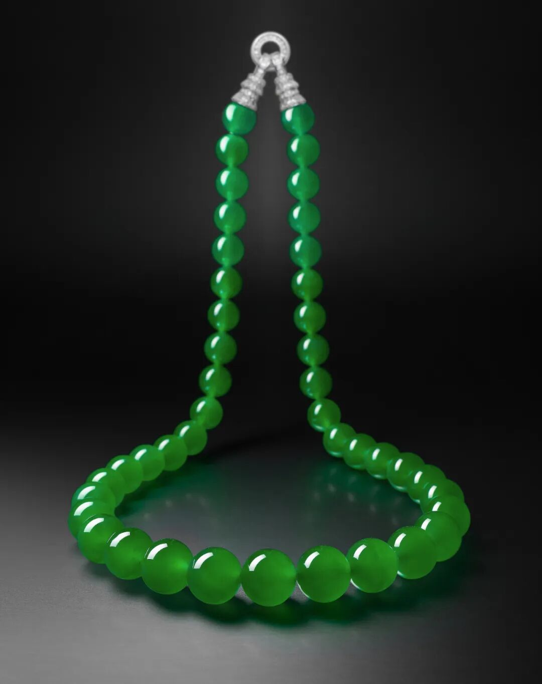稀世珍品天然「帝王绿」 翡翠珠 配 钻石项链