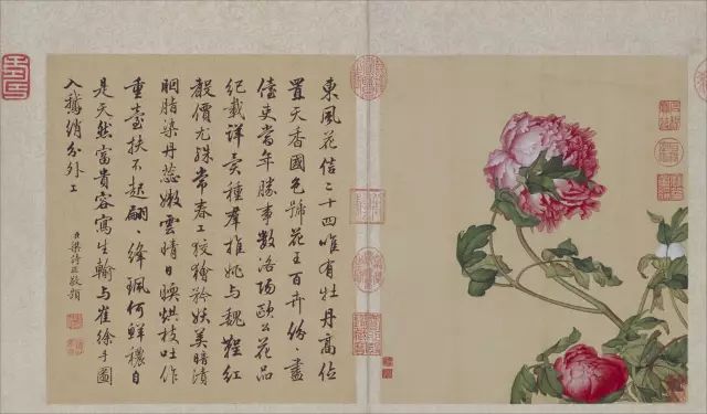 ▲郎世宁《仙萼长春图册-百合纏枝牡丹》