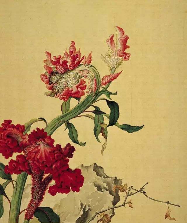 ▲郎世宁《仙萼长春图册-鸡冠花》