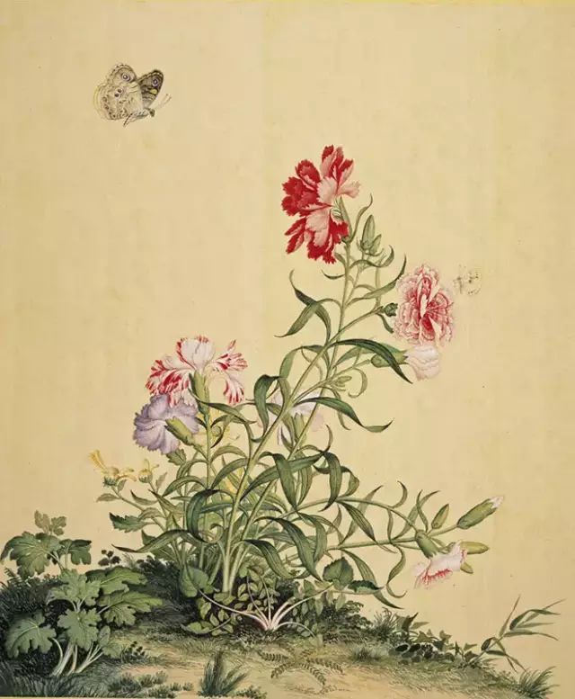 ▲郎世宁《仙萼长春图册-虞美人与蝴蝶花》