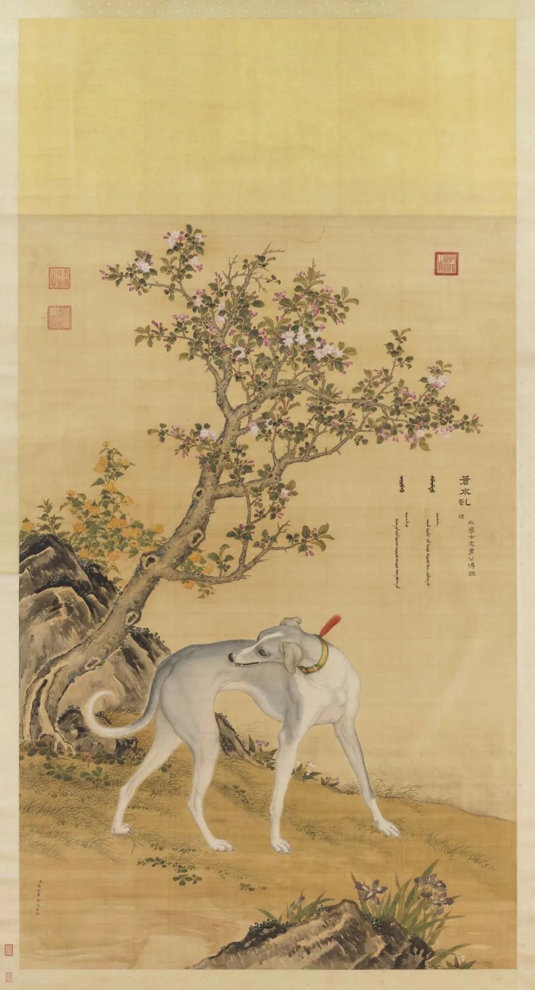 ▲郎世宁《十骏犬图之二 斑锦彪》
