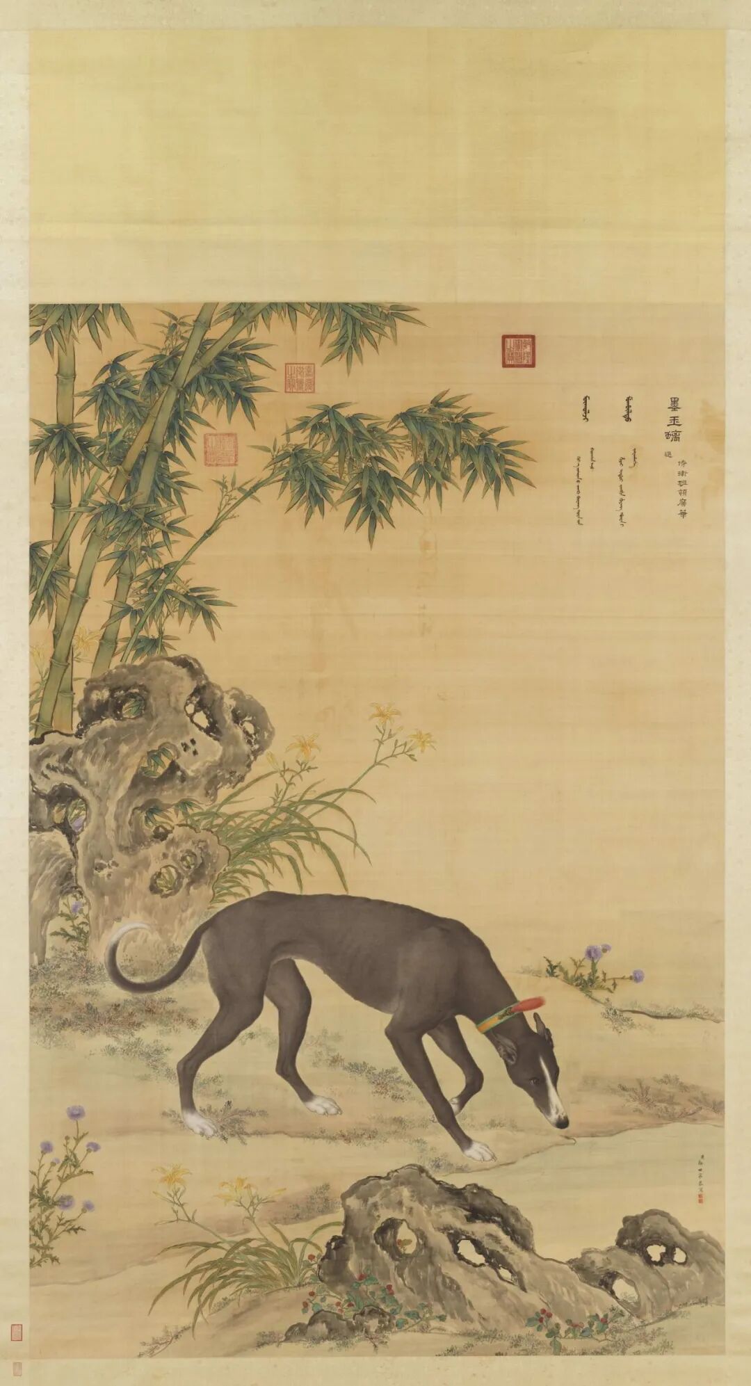 ▲郎世宁《十骏犬图之六 墨玉璃》