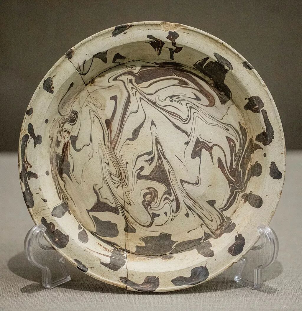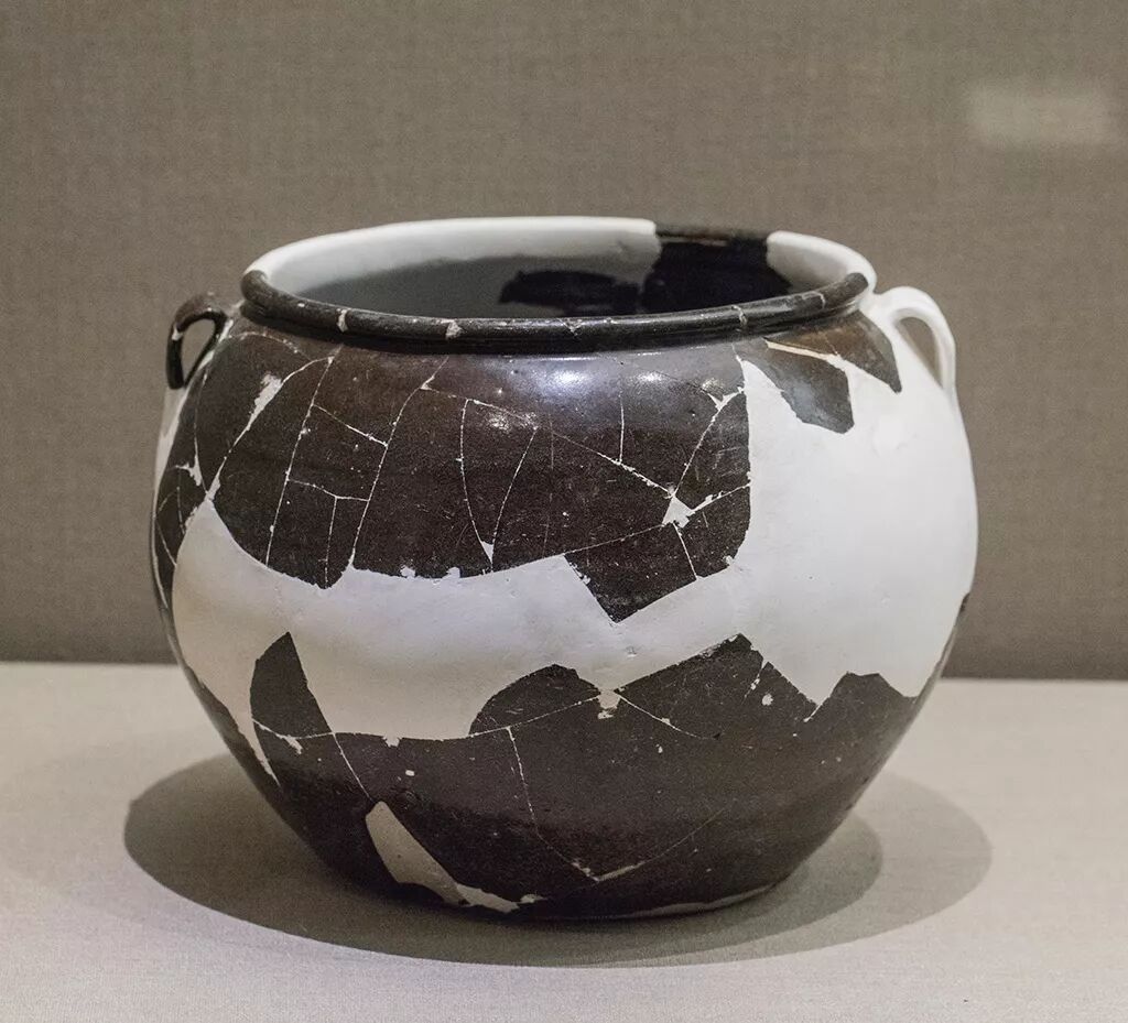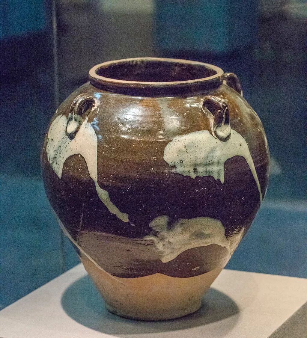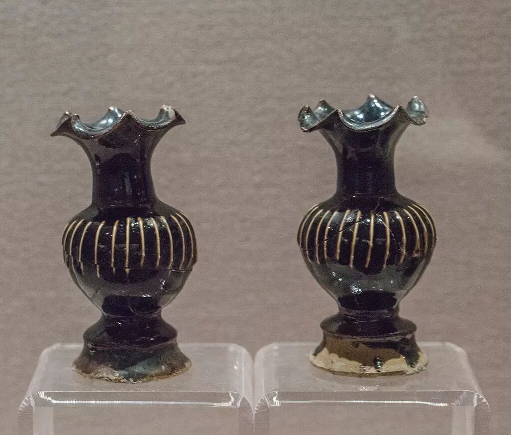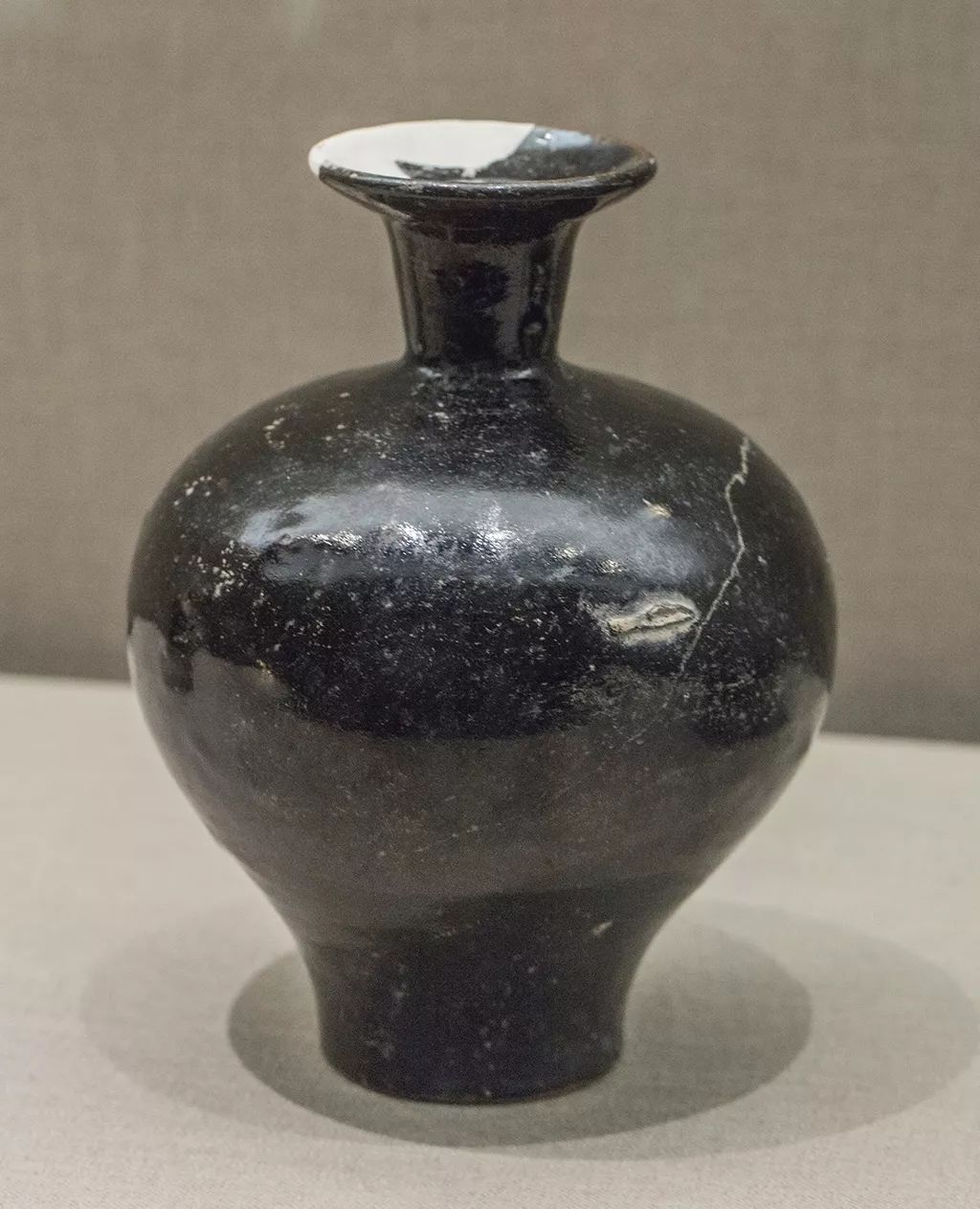 黑釉瓶 金代 鲁山县段店窑文化研究所藏绞胎,是把两种不同颜色的瓷土黑、白或褐白揉合在一起,