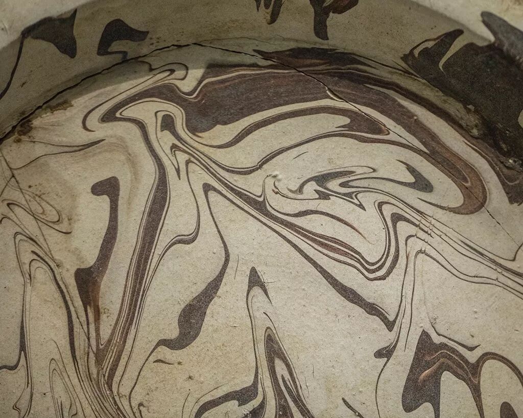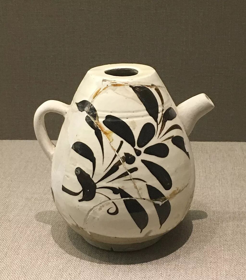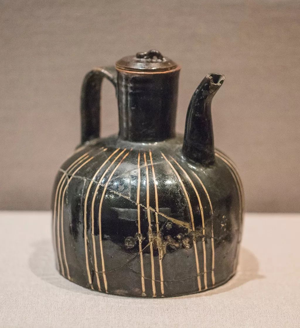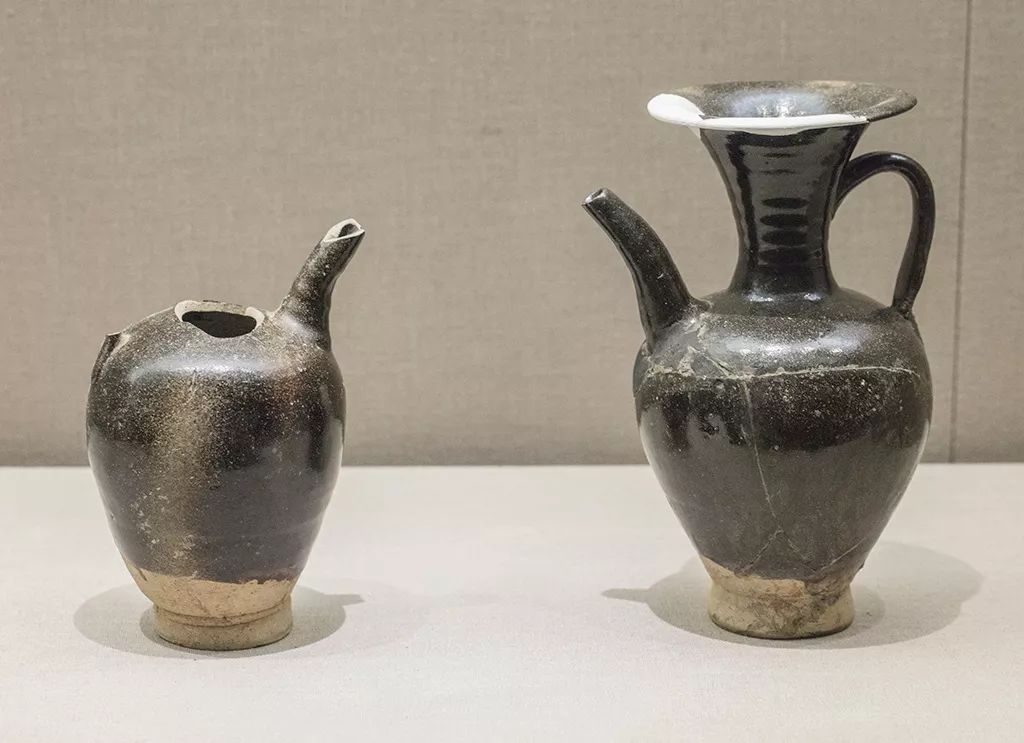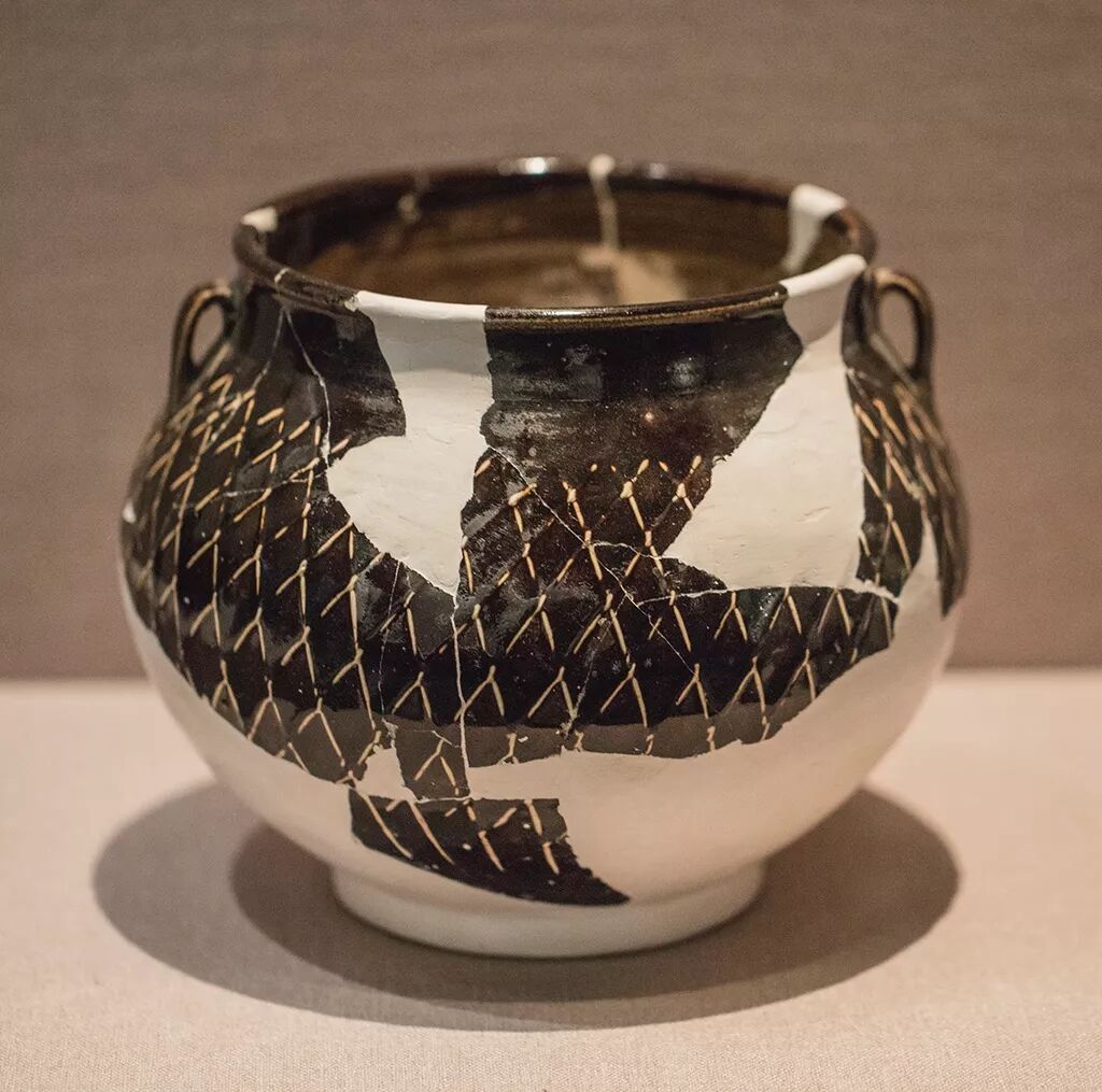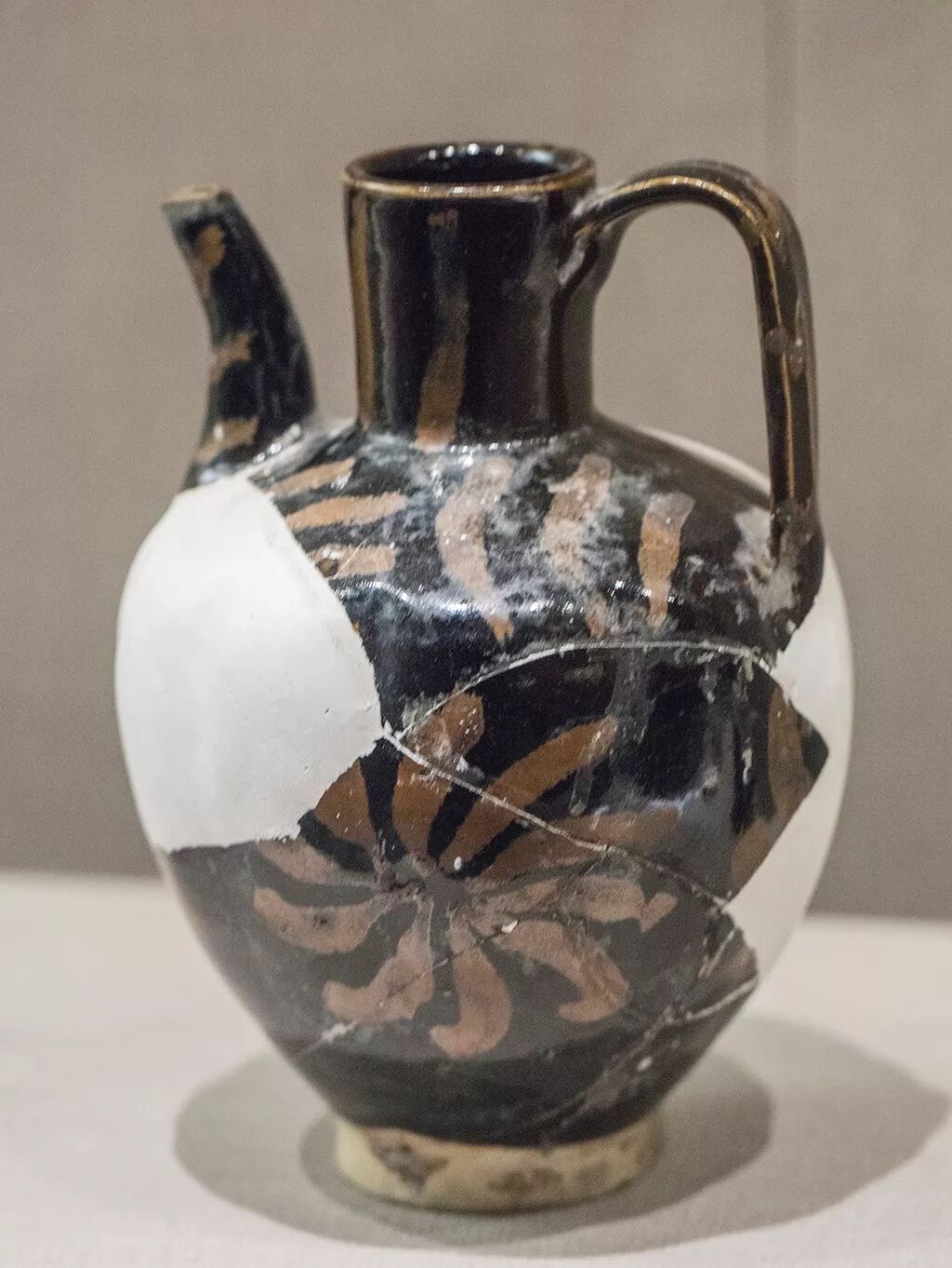 黑釉瓶 金代 鲁山县段店窑文化研究所藏绞胎,是把两种不同颜色的瓷土黑、白或褐白揉合在一起,