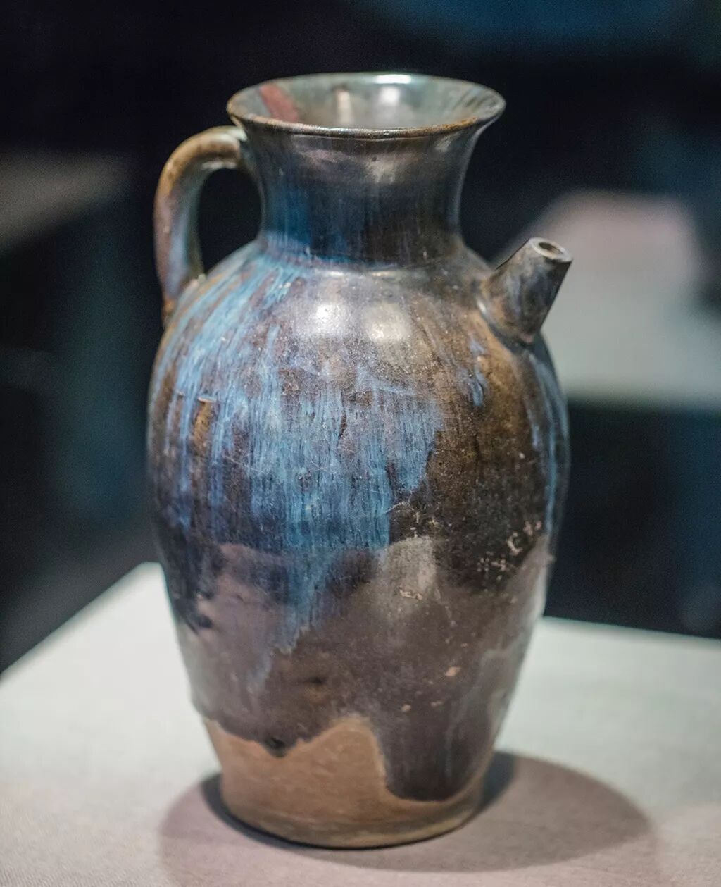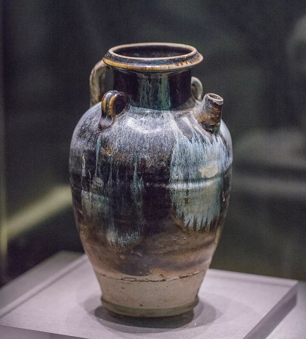 它利用撒彩或沥粉堆线法在黑釉、茶叶末釉或天蓝釉上施以天蓝或月白色斑点,作有规律或无规律的分布,变化莫测,自然生动,呈现出绚烂斑驳的艺术效果。其中以鲁山段店窑的花釉瓷质量最好,在史料中被称为“鲁山花瓷,颇有盛名。